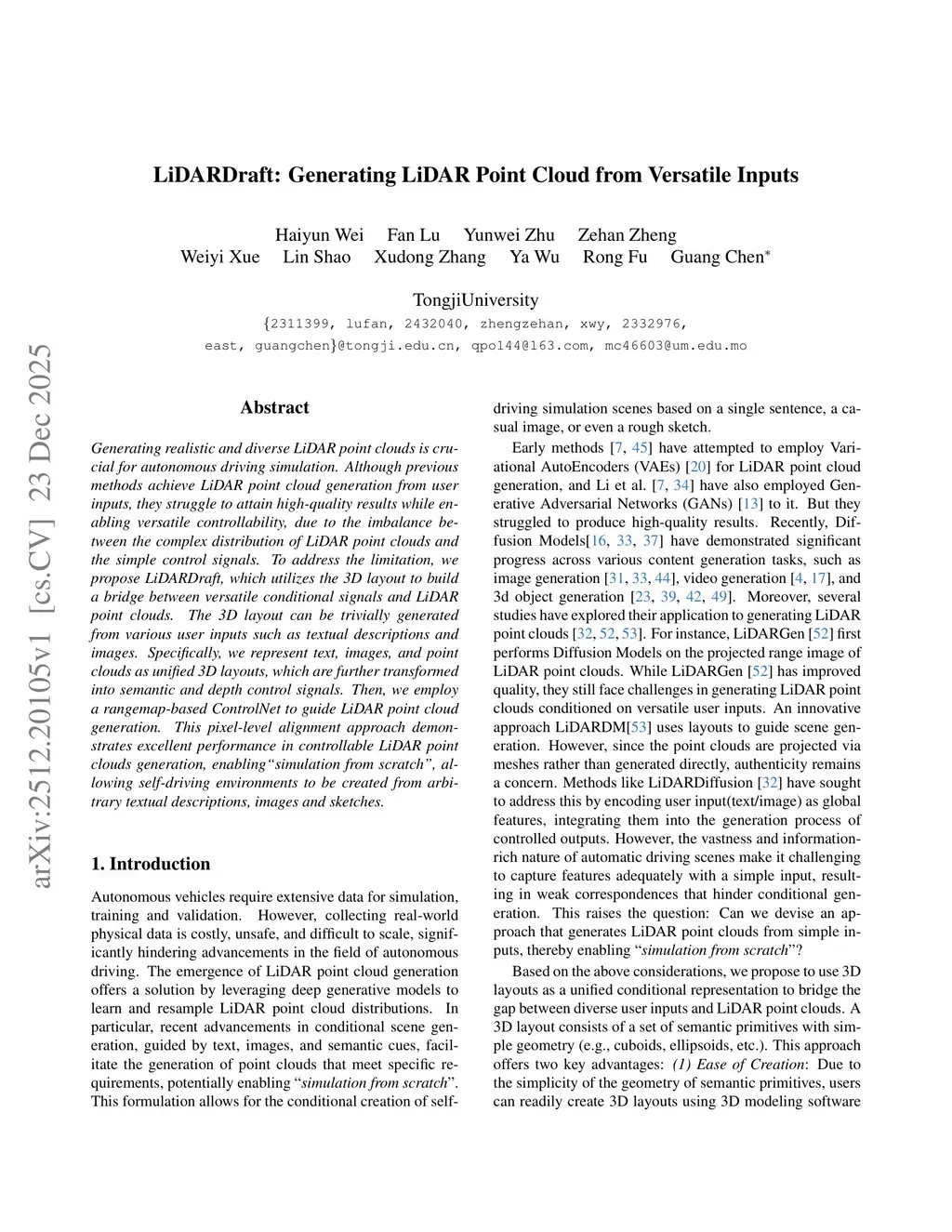 LiDARDraft: Generating LiDAR Point Cloud from Versatile Inputs
