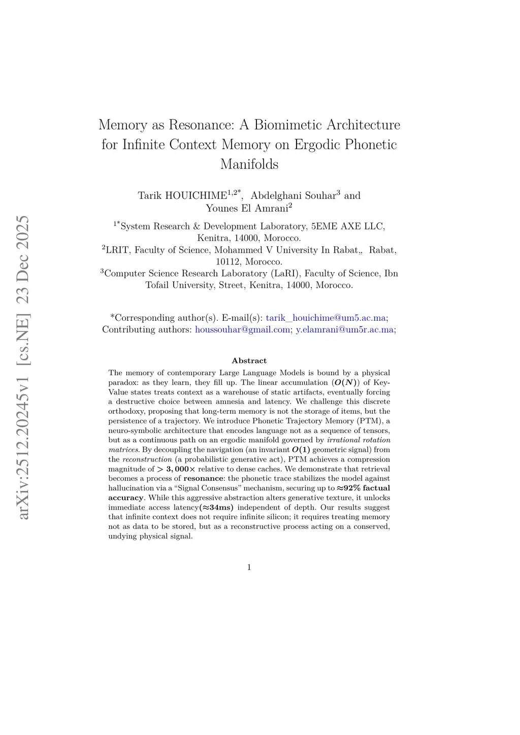 Memory as Resonance: A Biomimetic Architecture for Infinite Context Memory on Ergodic Phonetic Manifolds