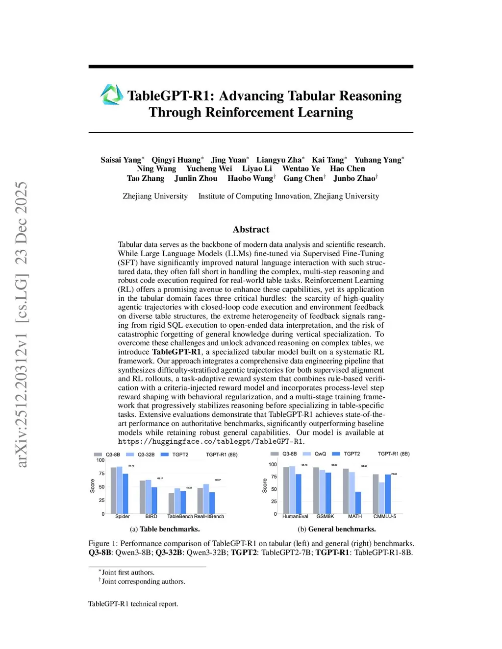 Tabular data serves as the backbone of modern data analysis and scientific research. While Large Language Models (LLMs) fine-tuned via Supervised Fine-Tuning (SFT) have significantly improved natural language interaction with such structured data, they often fall short in handling the complex, multi-step reasoning and robust code execution required for real-world table tasks. Reinforcement Learning (RL) offers a promising avenue to enhance these capabilities, yet its application in the tabular domain faces three critical hurdles: the scarcity of high-quality agentic trajectories with closed-loop code execution and environment feedback on diverse table structures, the extreme heterogeneity of feedback signals ranging from rigid SQL execution to open-ended data interpretation, and the risk of catastrophic forgetting of general knowledge during vertical specialization. To overcome these challenges and unlock advanced reasoning on complex tables, we introduce \textbf{TableGPT-R1}, a specialized tabular model built on a systematic RL framework. Our approach integrates a comprehensive data engineering pipeline that synthesizes difficulty-stratified agentic trajectories for both supervised alignment and RL rollouts, a task-adaptive reward system that combines rule-based verification with a criteria-injected reward model and incorporates process-level step reward shaping with behavioral regularization, and a multi-stage training framework that progressively stabilizes reasoning before specializing in table-specific tasks. Extensive evaluations demonstrate that TableGPT-R1 achieves state-of-the-art performance on authoritative benchmarks, significantly outperforming baseline models while retaining robust general capabilities. Our model is available atthis https URL.