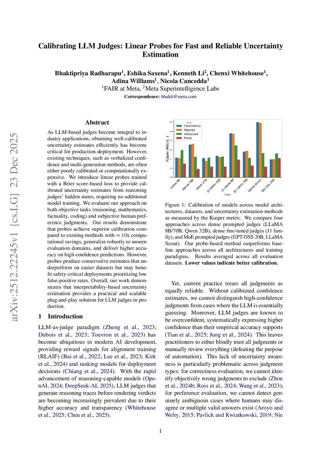 Calibrating LLM Judges: Linear Probes for Fast and Reliable Uncertainty Estimation