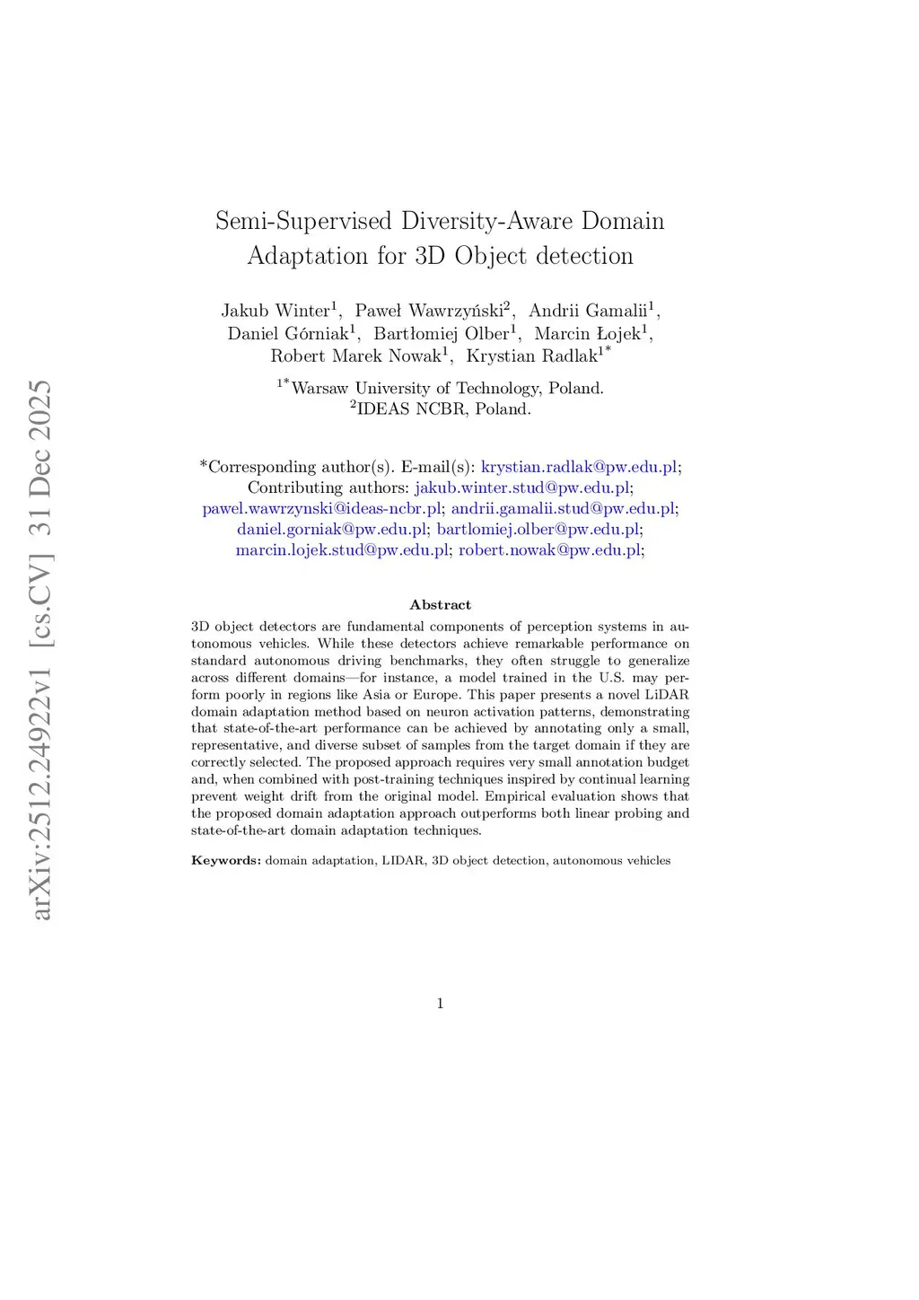 Semi-Supervised Diversity-Aware Domain Adaptation for 3D Object detection