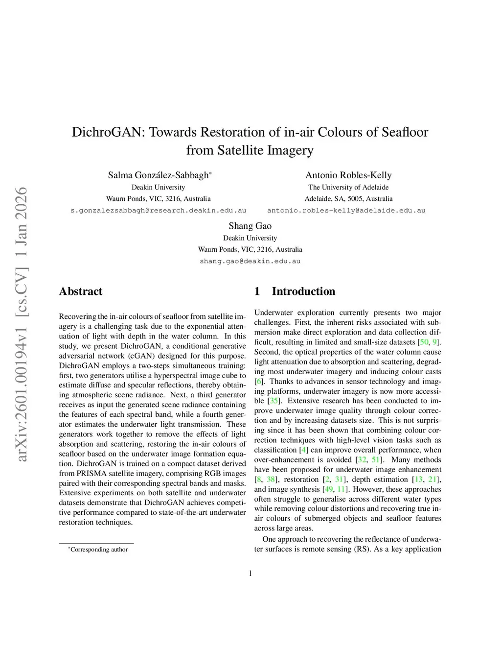 DichroGAN: Towards Restoration of in-air Colours of Seafloor from Satellite Imagery