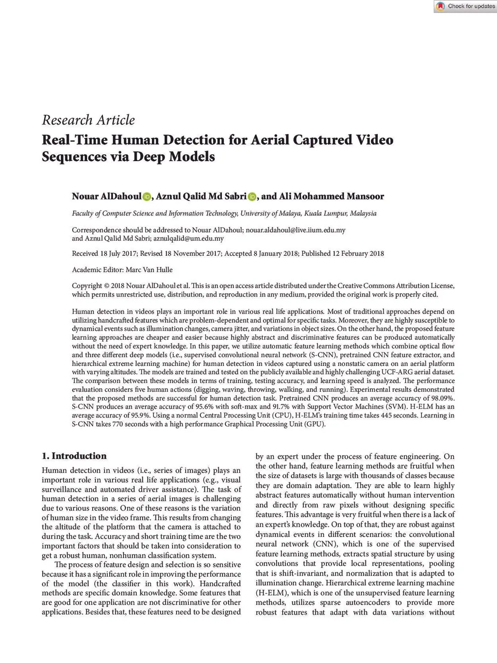 Real-Time Human Detection for Aerial Captured Video Sequences via Deep Models
