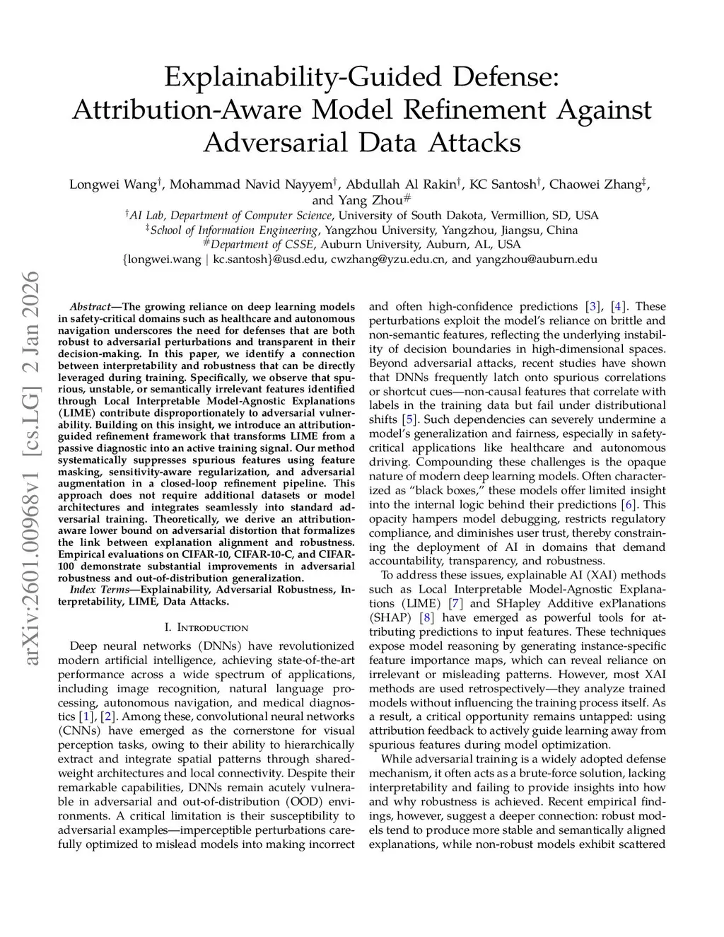 The growing reliance on deep learning models in safety-critical domains such as healthcare and autonomous navigation underscores the need for defenses that are both robust to adversarial perturbations and transparent in their decision-making. In this paper, we identify a connection between interpretability and robustness that can be directly leveraged during training. Specifically, we observe that spurious, unstable, or semantically irrelevant features identified through Local Interpretable Model-Agnostic Explanations (LIME) contribute disproportionately to adversarial vulnerability. Building on this insight, we introduce an attribution-guided refinement framework that transforms LIME from a passive diagnostic into an active training signal. Our method systematically suppresses spurious features using feature masking, sensitivity-aware regularization, and adversarial augmentation in a closed-loop refinement pipeline. This approach does not require additional datasets or model architectures and integrates seamlessly into standard adversarial training. Theoretically, we derive an attribution-aware lower bound on adversarial distortion that formalizes the link between explanation alignment and robustness. Empirical evaluations on CIFAR-10, CIFAR-10-C, and CIFAR-100 demonstrate substantial improvements in adversarial robustness and out-of-distribution generalization.