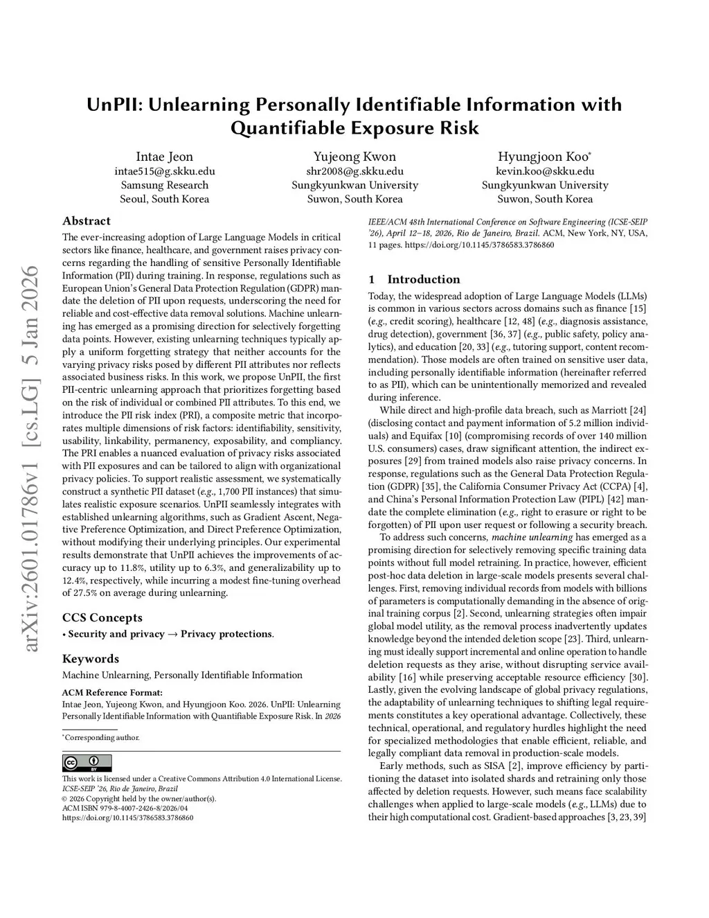 UnPII: Unlearning Personally Identifiable Information with Quantifiable Exposure Risk