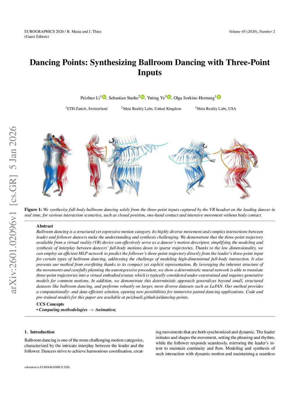 Dancing Points: Synthesizing Ballroom Dancing with Three-Point Inputs