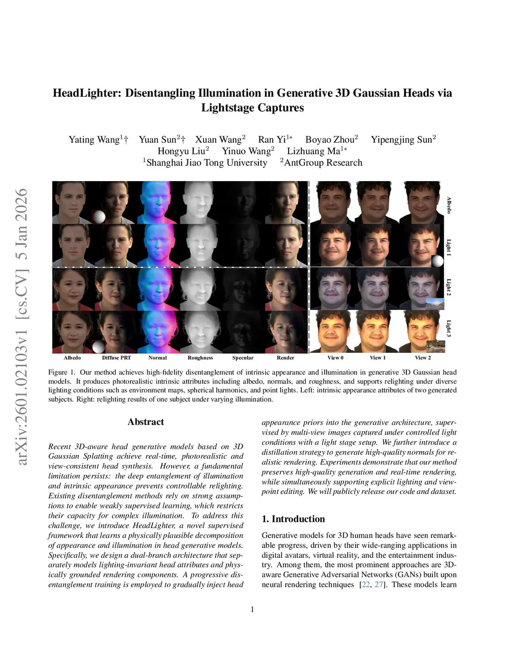 HeadLighter: Disentangling Illumination in Generative 3D Gaussian Heads via Lightstage Captures