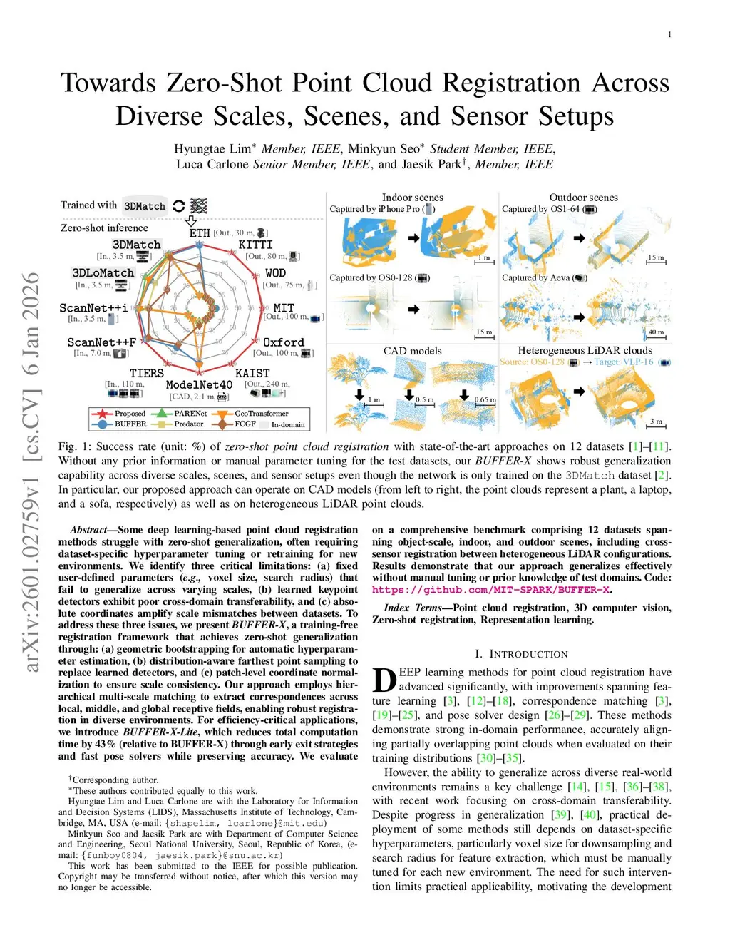 Some deep learning-based point cloud registration methods struggle with zero-shot generalization, often requiring dataset-specific hyperparameter tuning or retraining for new environments. We identify three critical limitations: (a) fixed user-defined parameters (e.g., voxel size, search radius) that fail to generalize across varying scales, (b) learned keypoint detectors exhibit poor cross-domain transferability, and (c) absolute coordinates amplify scale mismatches between datasets. To address these three issues, we present BUFFER-X, a training-free registration framework that achieves zero-shot generalization through: (a) geometric bootstrapping for automatic hyperparameter estimation, (b) distribution-aware farthest point sampling to replace learned detectors, and (c) patch-level coordinate normalization to ensure scale consistency. Our approach employs hierarchical multi-scale matching to extract correspondences across local, middle, and global receptive fields, enabling robust registration in diverse environments. For efficiency-critical applications, we introduce BUFFER-X-Lite, which reduces total computation time by 43% (relative to BUFFER-X) through early exit strategies and fast pose solvers while preserving accuracy. We evaluate on a comprehensive benchmark comprising 12 datasets spanning object-scale, indoor, and outdoor scenes, including cross-sensor registration between heterogeneous LiDAR configurations. Results demonstrate that our approach generalizes effectively without manual tuning or prior knowledge of test domains. Code:this https URL.