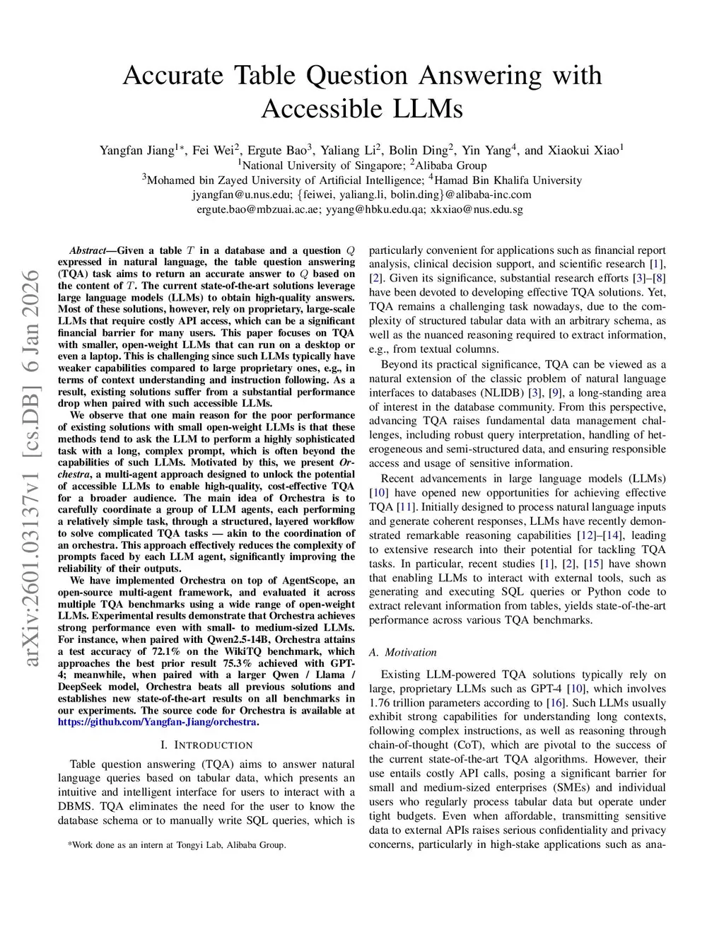Given a table T in a database and a question Q in natural language, the table question answering (TQA) task aims to return an accurate answer to Q based on the content of T. Recent state-of-the-art solutions leverage large language models (LLMs) to obtain high-quality answers. However, most rely on proprietary, large-scale LLMs with costly API access, posing a significant financial barrier. This paper instead focuses on TQA with smaller, open-weight LLMs that can run on a desktop or laptop. This setting is challenging, as such LLMs typically have weaker capabilities than large proprietary models, leading to substantial performance degradation with existing methods.We observe that a key reason for this degradation is that prior approaches often require the LLM to solve a highly sophisticated task using long, complex prompts, which exceed the capabilities of small open-weight LLMs. Motivated by this observation, we present Orchestra, a multi-agent approach that unlocks the potential of accessible LLMs for high-quality, cost-effective TQA. Orchestra coordinates a group of LLM agents, each responsible for a relatively simple task, through a structured, layered workflow to solve complex TQA problems -- akin to an orchestra. By reducing the prompt complexity faced by each agent, Orchestra significantly improves output reliability.We implement Orchestra on top of AgentScope, an open-source multi-agent framework, and evaluate it on multiple TQA benchmarks using a wide range of open-weight LLMs. Experimental results show that Orchestra achieves strong performance even with small- to medium-sized models. For example, with Qwen2.5-14B, Orchestra reaches 72.1% accuracy on WikiTQ, approaching the best prior result of 75.3% achieved with GPT-4; with larger Qwen, Llama, or DeepSeek models, Orchestra outperforms all prior methods and establishes new state-of-the-art results across all benchmarks.