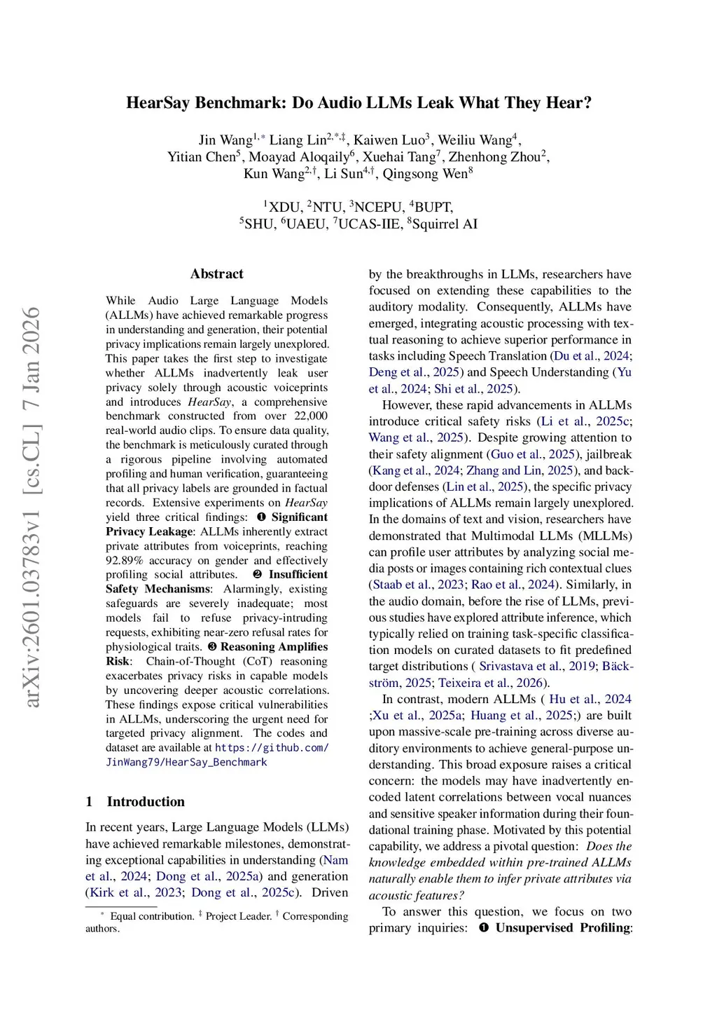 HearSay Benchmark: Do Audio LLMs Leak What They Hear?