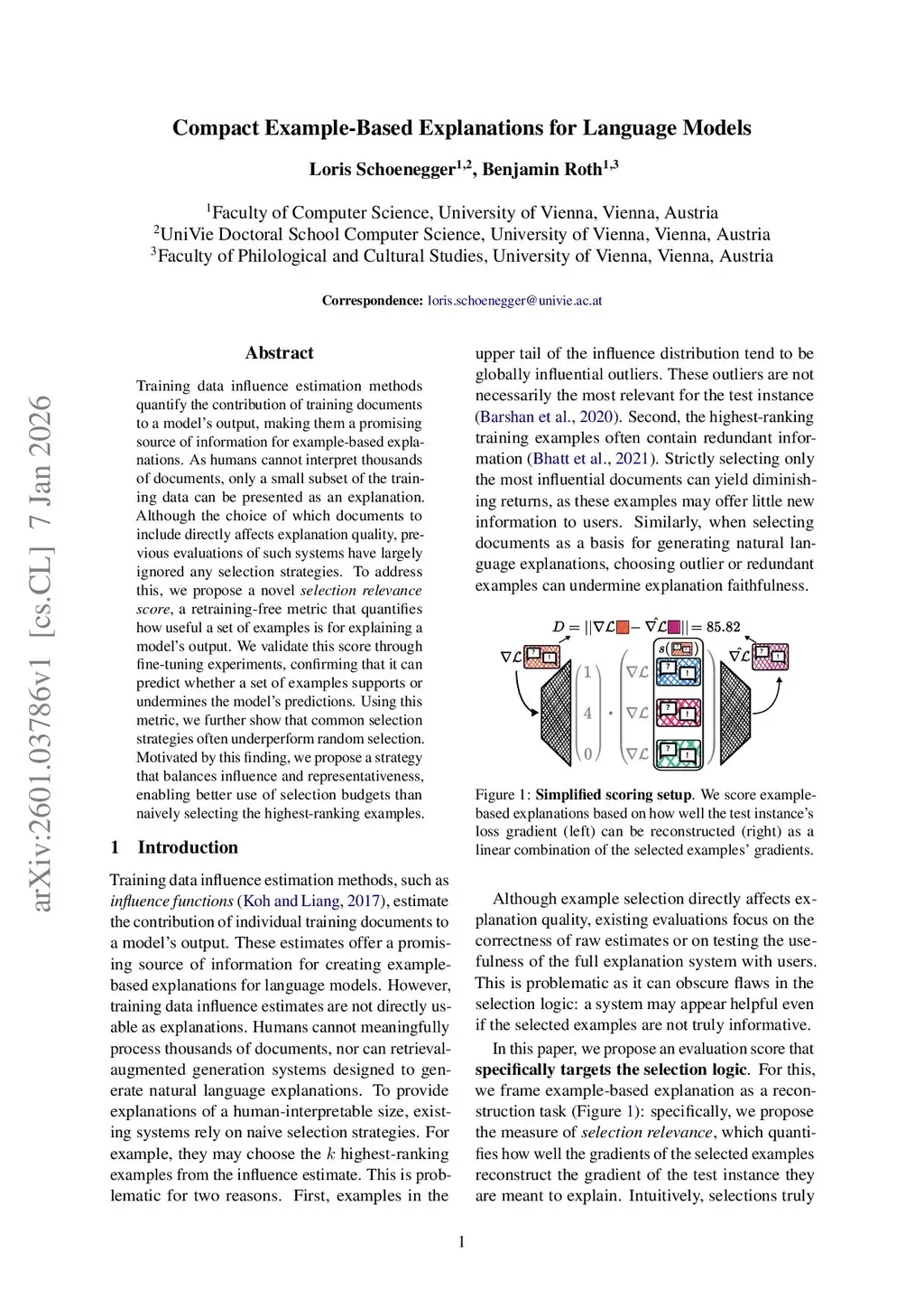 Compact Example-Based Explanations for Language Models