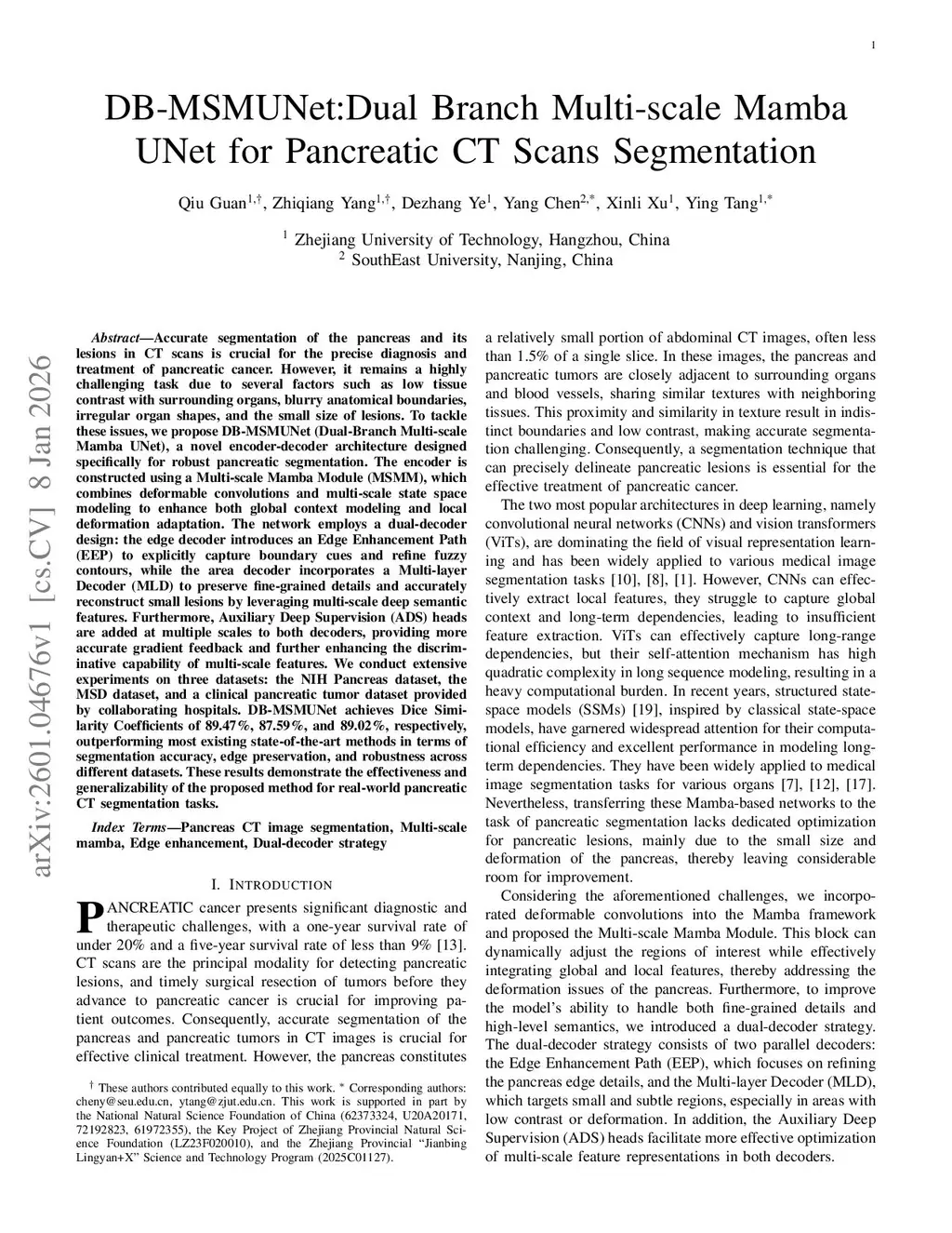 DB-MSMUNet:Dual Branch Multi-scale Mamba UNet for Pancreatic CT Scans Segmentation