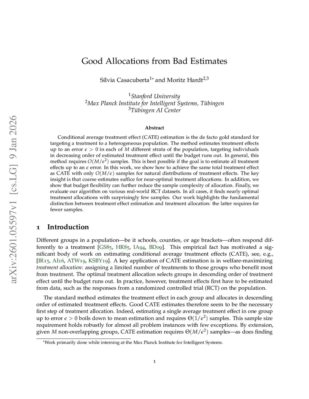 Conditional average treatment effect (CATE) estimation is the de facto gold standard for targeting a treatment to a heterogeneous population. The method estimates treatment effects up to an error in each of different strata of the population, targeting individuals in decreasing order of estimated treatment effect until the budget runs out. In general, this method requires samples. This is best possible if the goal is to estimate all treatment effects up to an error. In this work, we show how to achieve the same total treatment effect as CATE with only samples for natural distributions of treatment effects. The key insight is that coarse estimates suffice for near-optimal treatment allocations. In addition, we show that budget flexibility can further reduce the sample complexity of allocation. Finally, we evaluate our algorithm on various real-world RCT datasets. In all cases, it finds nearly optimal treatment allocations with surprisingly few samples. Our work highlights the fundamental distinction between treatment effect estimation and treatment allocation: the latter requires far fewer samples.