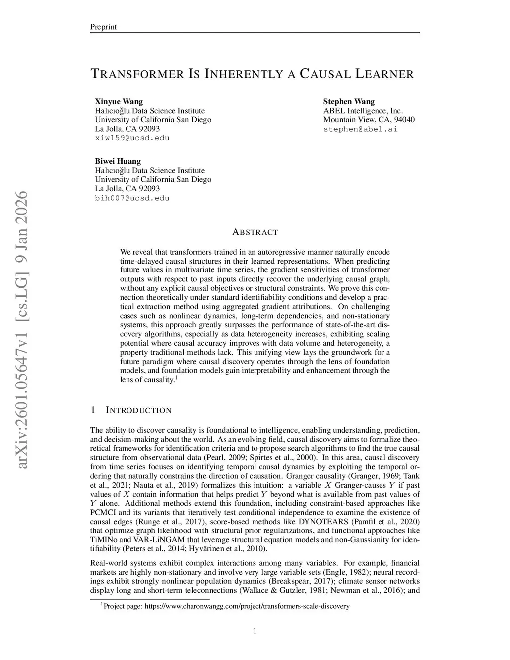 We reveal that transformers trained in an autoregressive manner naturally encode time-delayed causal structures in their learned representations. When predicting future values in multivariate time series, the gradient sensitivities of transformer outputs with respect to past inputs directly recover the underlying causal graph, without any explicit causal objectives or structural constraints. We prove this connection theoretically under standard identifiability conditions and develop a practical extraction method using aggregated gradient attributions. On challenging cases such as nonlinear dynamics, long-term dependencies, and non-stationary systems, this approach greatly surpasses the performance of state-of-the-art discovery algorithms, especially as data heterogeneity increases, exhibiting scaling potential where causal accuracy improves with data volume and heterogeneity, a property traditional methods lack. This unifying view lays the groundwork for a future paradigm where causal discovery operates through the lens of foundation models, and foundation models gain interpretability and enhancement through the lens of causality.