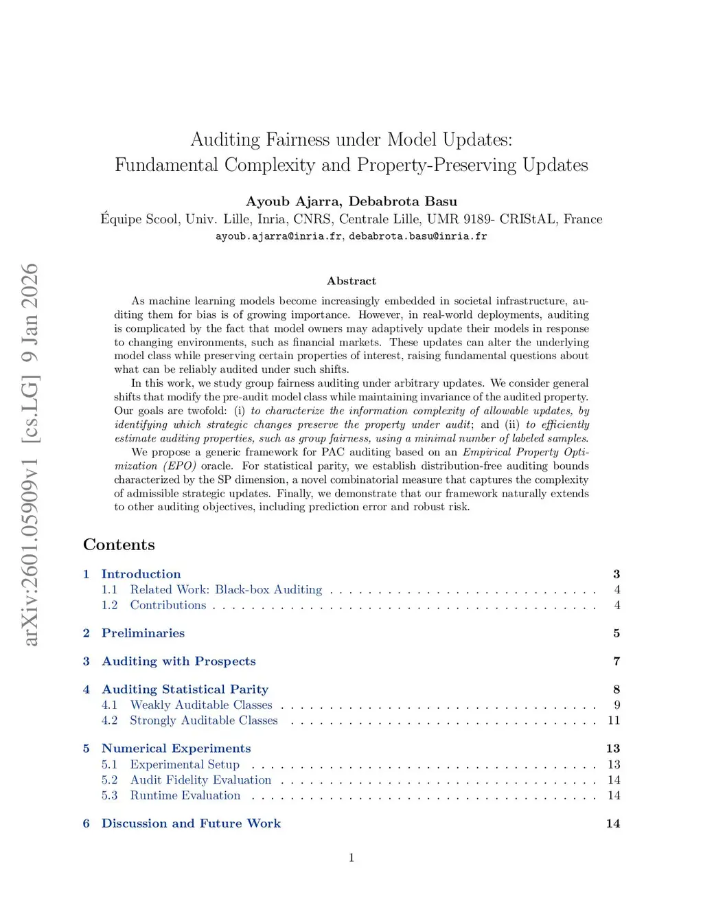 As machine learning models become increasingly embedded in societal infrastructure, auditing them for bias is of growing importance. However, in real-world deployments, auditing is complicated by the fact that model owners may adaptively update their models in response to changing environments, such as financial markets. These updates can alter the underlying model class while preserving certain properties of interest, raising fundamental questions about what can be reliably audited under such shifts.In this work, we study group fairness auditing under arbitrary updates. We consider general shifts that modify the pre-audit model class while maintaining invariance of the audited property. Our goals are two-fold: (i) to characterize the information complexity of allowable updates, by identifying which strategic changes preserve the property under audit; and (ii) to efficiently estimate auditing properties, such as group fairness, using a minimal number of labeled samples.We propose a generic framework for PAC auditing based on an Empirical Property Optimization (EPO) oracle. For statistical parity, we establish distribution-free auditing bounds characterized by the SP dimension, a novel combinatorial measure that captures the complexity of admissible strategic updates. Finally, we demonstrate that our framework naturally extends to other auditing objectives, including prediction error and robust risk.