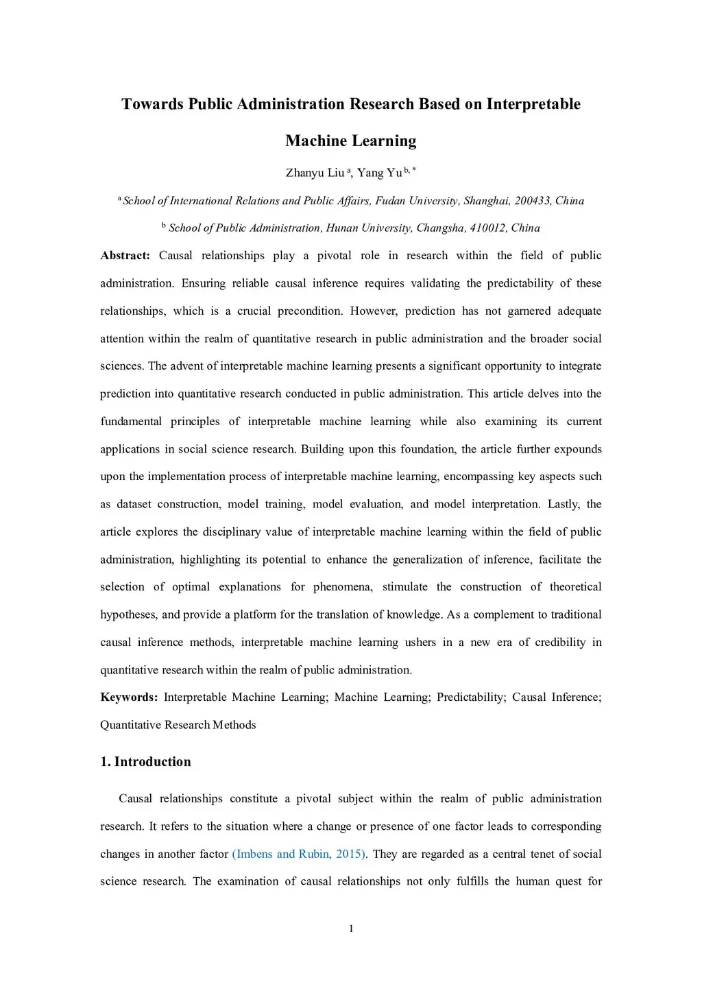 Towards Public Administration Research Based on Interpretable Machine Learning