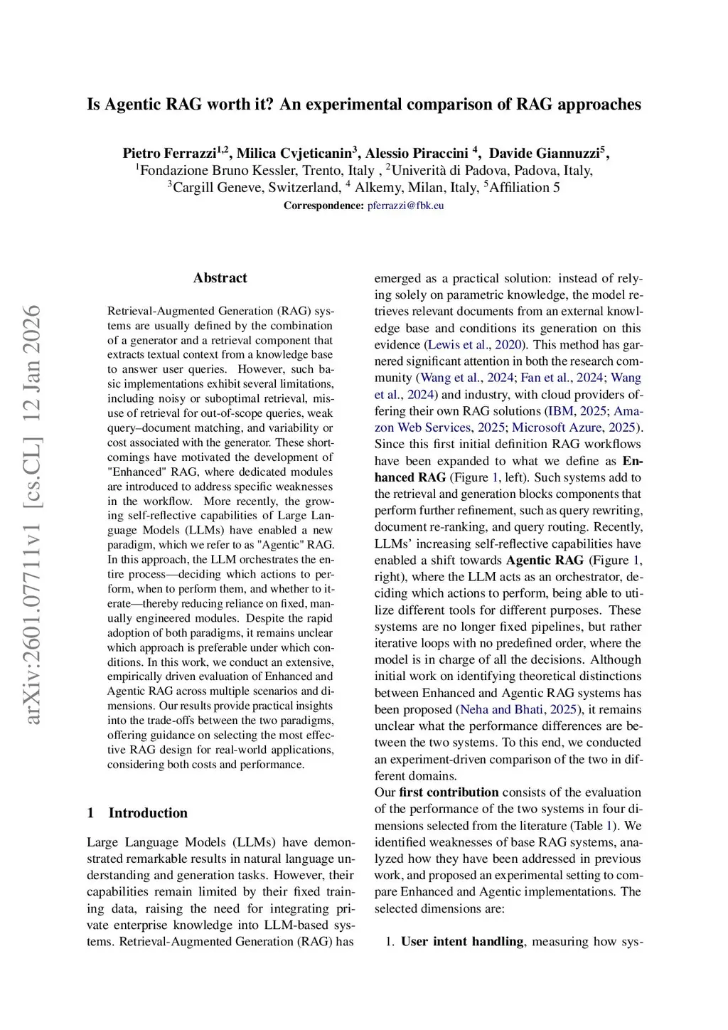 Is Agentic RAG worth it? An experimental comparison of RAG approaches