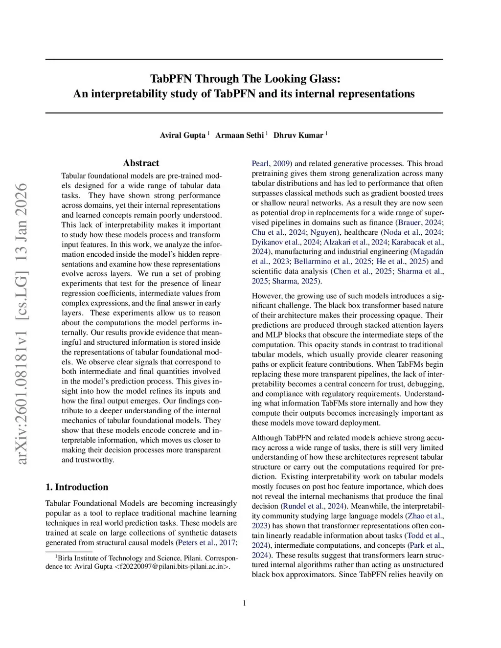 Tabular foundational models are pre-trained models designed for a wide range of tabular data tasks. They have shown strong performance across domains, yet their internal representations and learned concepts remain poorly understood. This lack of interpretability makes it important to study how these models process and transform input features. In this work, we analyze the information encoded inside the model's hidden representations and examine how these representations evolve across layers. We run a set of probing experiments that test for the presence of linear regression coefficients, intermediate values from complex expressions, and the final answer in early layers. These experiments allow us to reason about the computations the model performs internally. Our results provide evidence that meaningful and structured information is stored inside the representations of tabular foundational models. We observe clear signals that correspond to both intermediate and final quantities involved in the model's prediction process. This gives insight into how the model refines its inputs and how the final output emerges. Our findings contribute to a deeper understanding of the internal mechanics of tabular foundational models. They show that these models encode concrete and interpretable information, which moves us closer to making their decision processes more transparent and trustworthy.