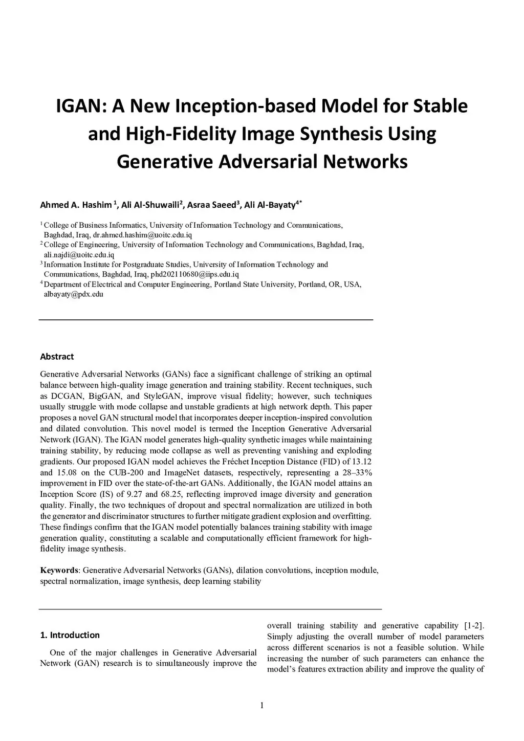 IGAN: A New Inception-based Model for Stable and High-Fidelity Image Synthesis Using Generative Adversarial Networks