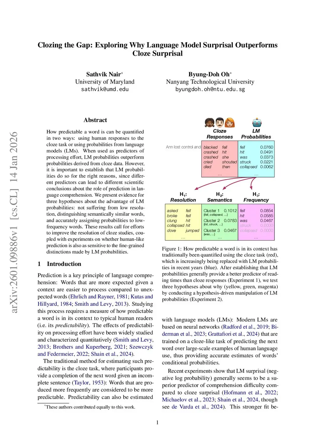 How predictable a word is can be quantified in two ways: using human responses to the cloze task or using probabilities from language models (LMs).When used as predictors of processing effort, LM probabilities outperform probabilities derived from cloze data. However, it is important to establish that LM probabilities do so for the right reasons, since different predictors can lead to different scientific conclusions about the role of prediction in language comprehension. We present evidence for three hypotheses about the advantage of LM probabilities: not suffering from low resolution, distinguishing semantically similar words, and accurately assigning probabilities to low-frequency words. These results call for efforts to improve the resolution of cloze studies, coupled with experiments on whether human-like prediction is also as sensitive to the fine-grained distinctions made by LM probabilities.