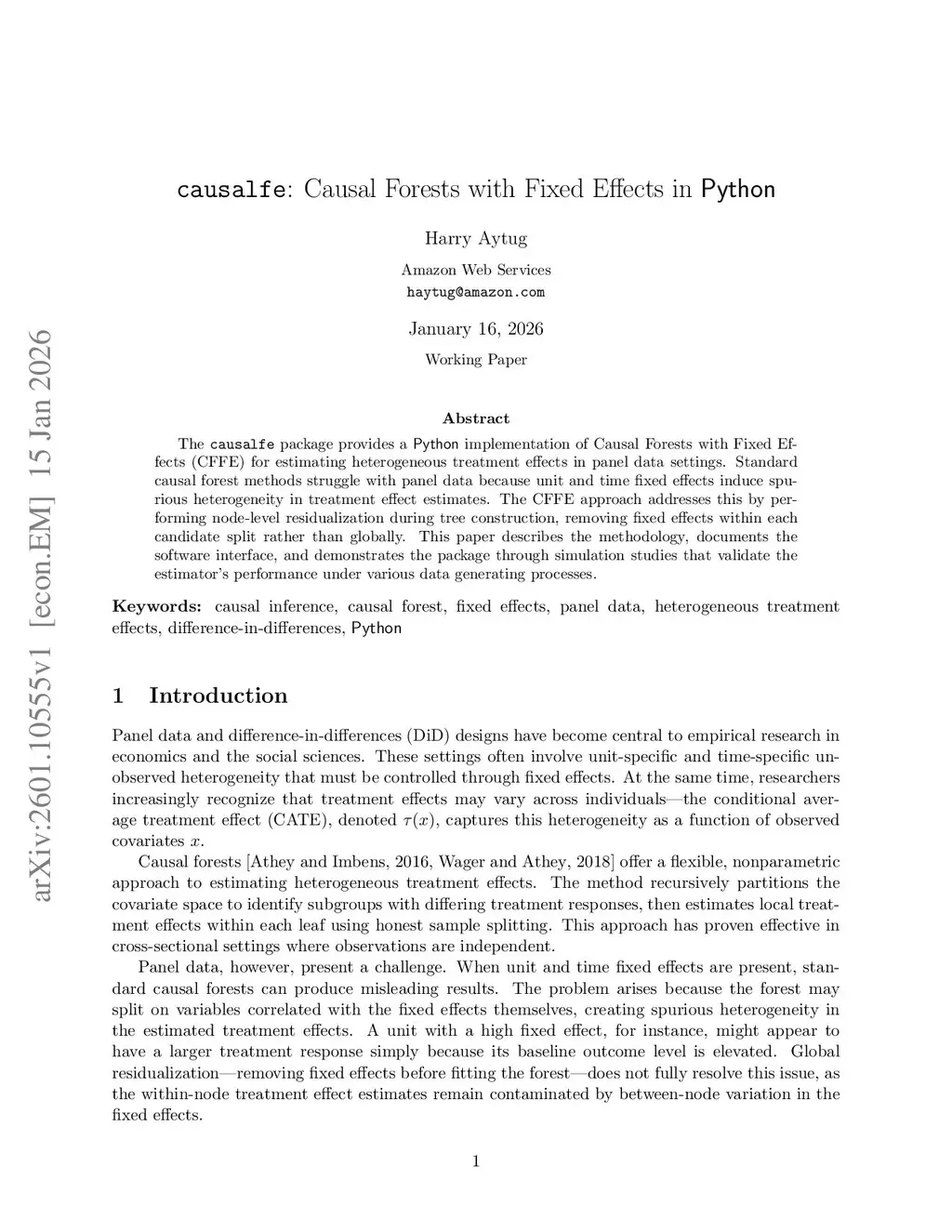 causalfe: Causal Forests with Fixed Effects in Python