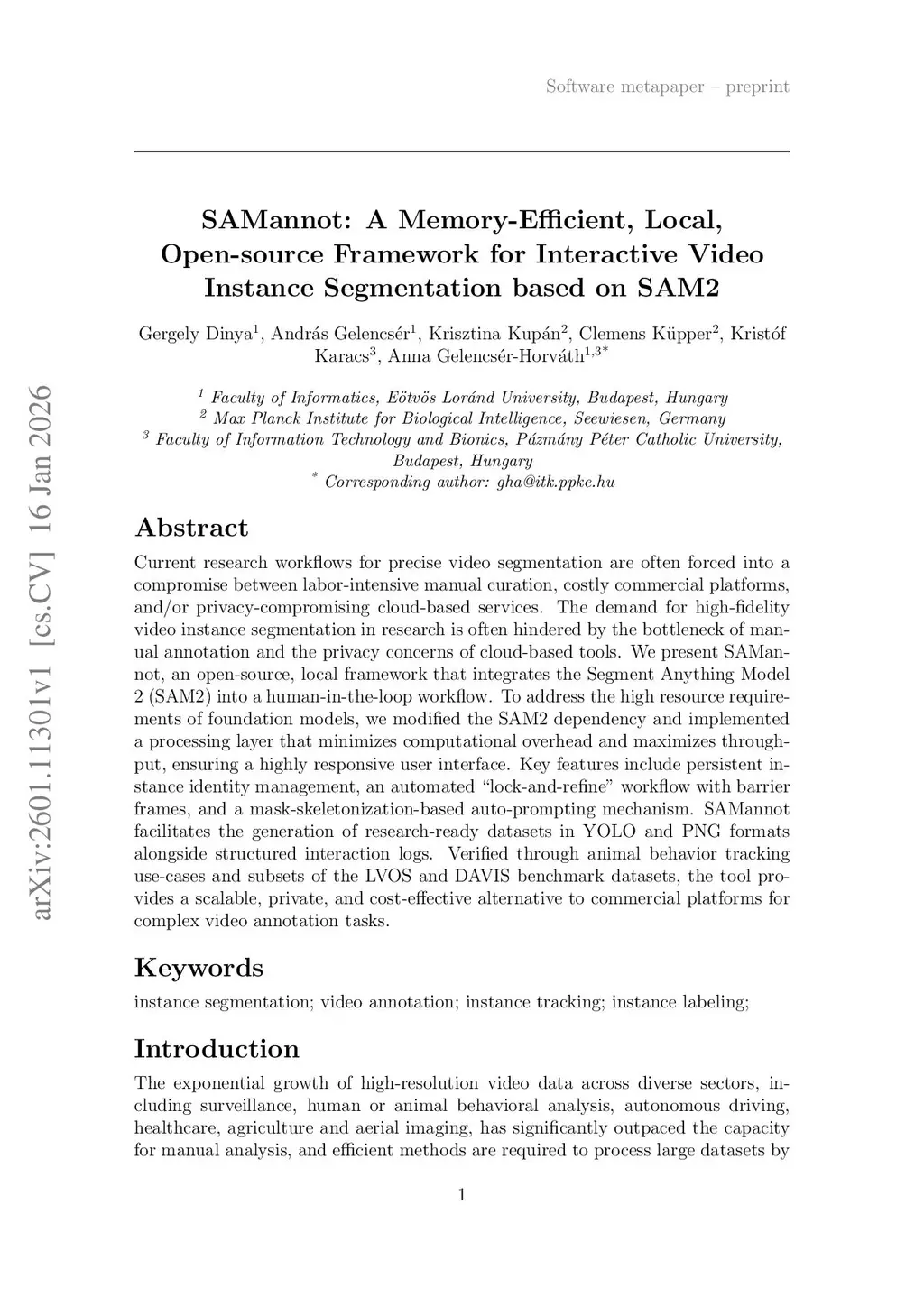 SAMannot: A Memory-Efficient, Local, Open-source Framework for Interactive Video Instance Segmentation based on SAM2