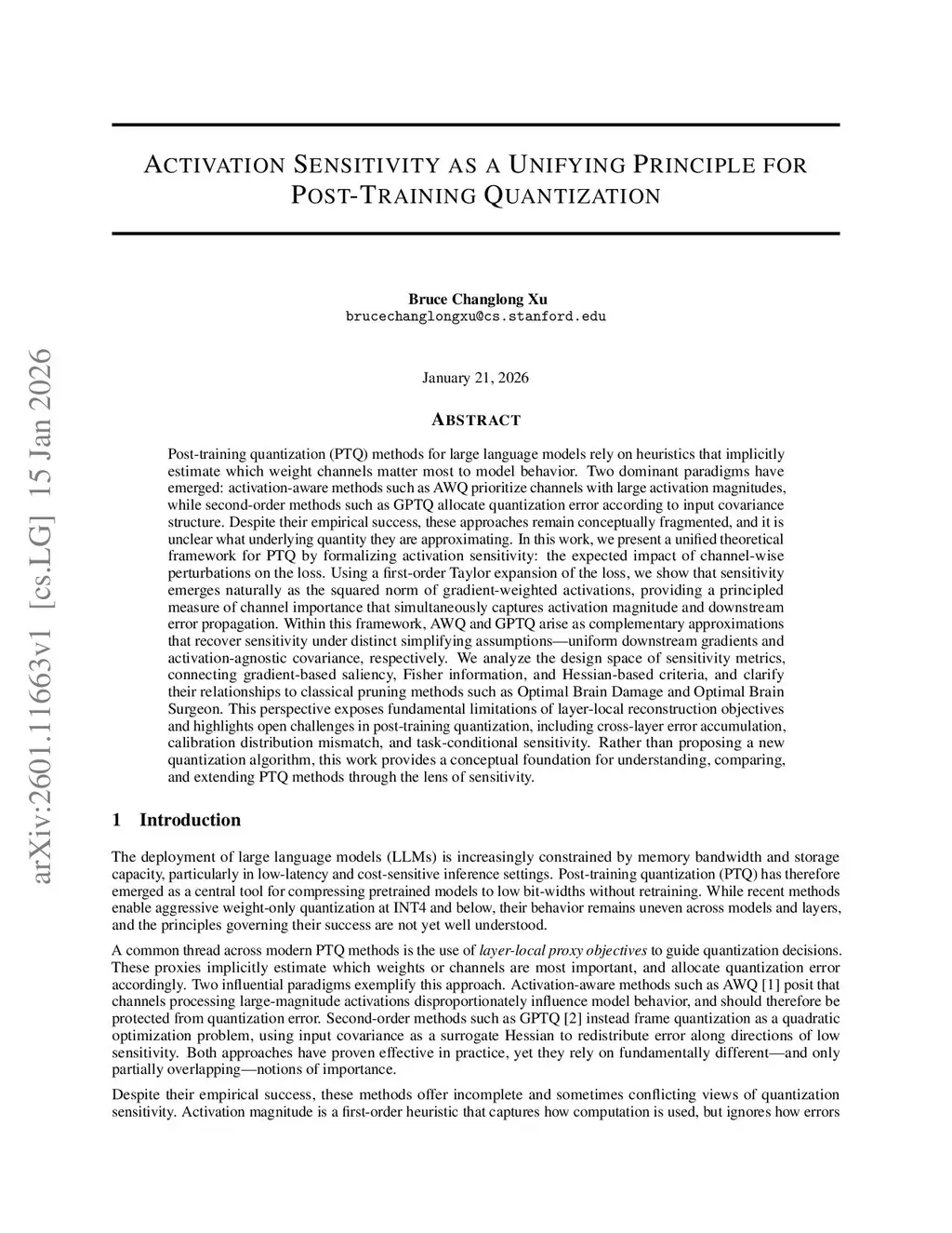 Activation Sensitivity as a Unifying Principle for Post-Training Quantization