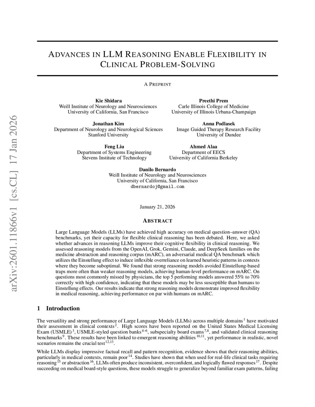 Advances in LLM Reasoning Enable Flexibility in Clinical Problem-Solving