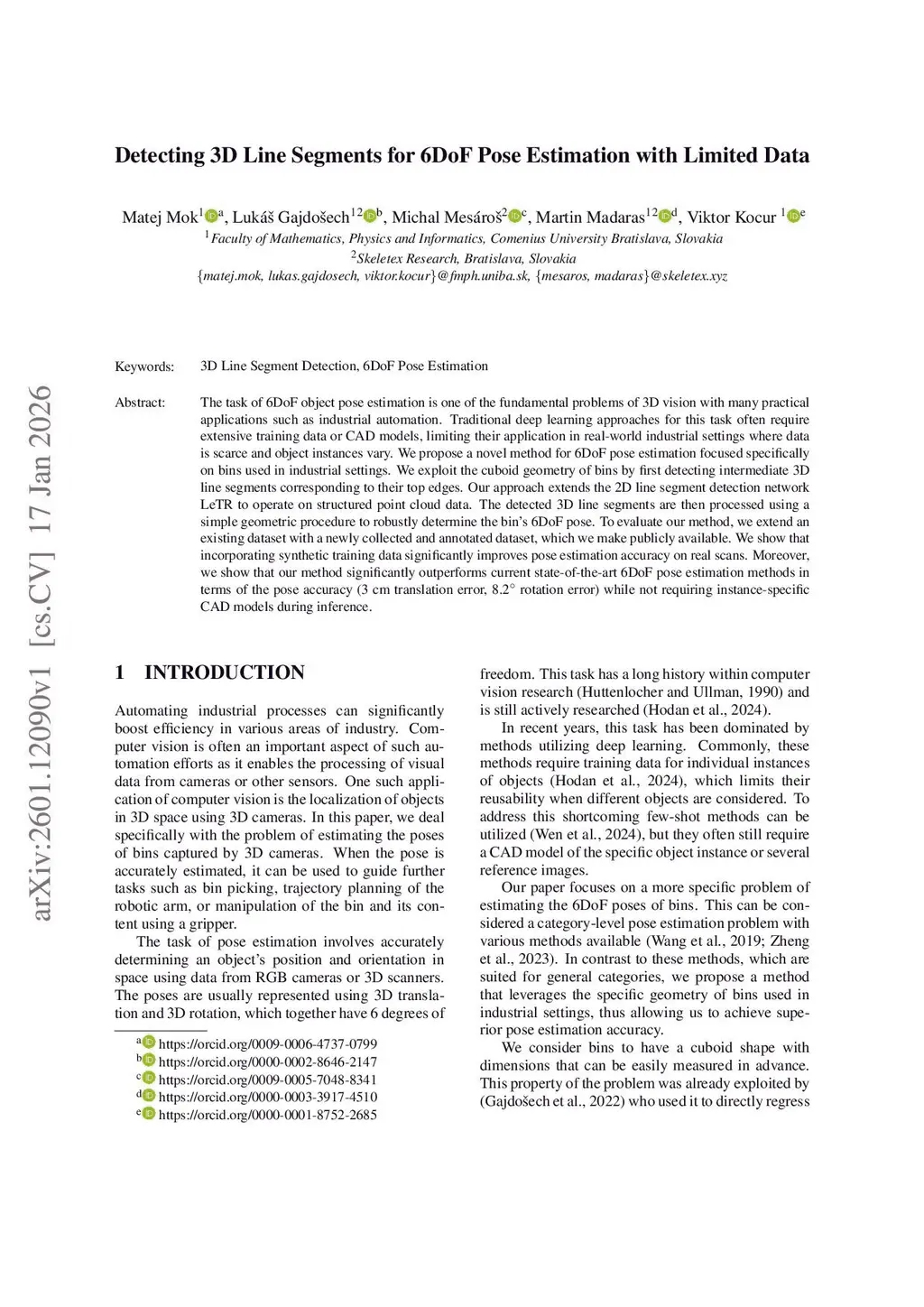 Detecting 3D Line Segments for 6DoF Pose Estimation with Limited Data