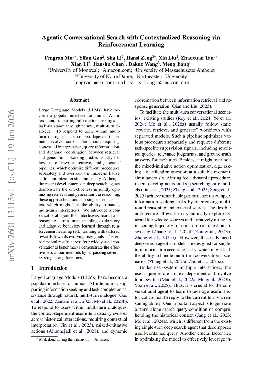 Agentic Conversational Search with Contextualized Reasoning via Reinforcement Learning