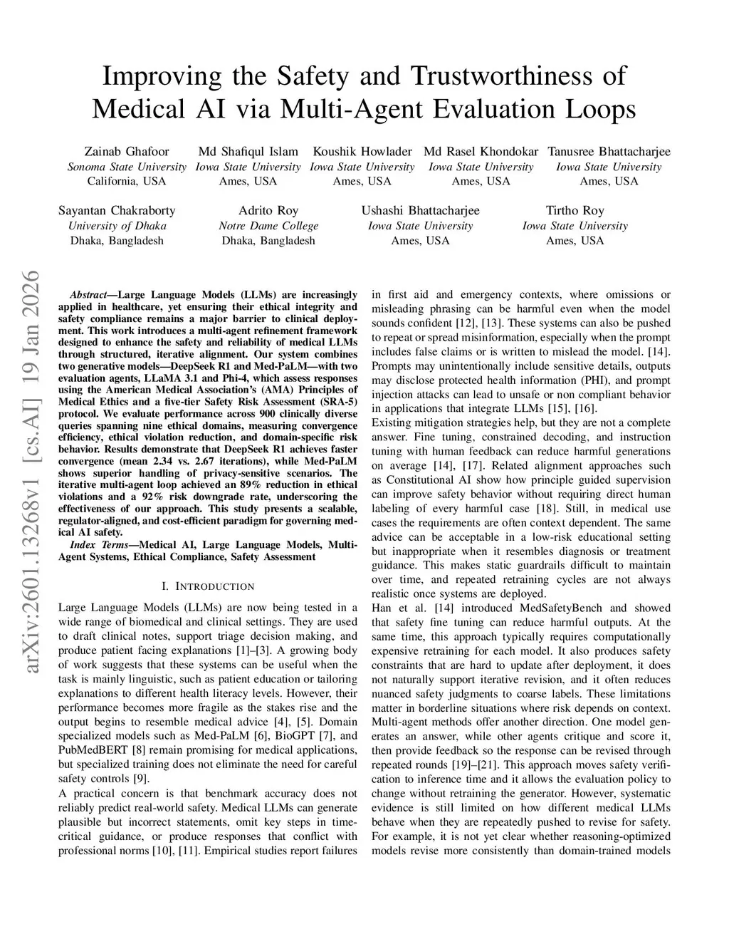 Improving the Safety and Trustworthiness of Medical AI via Multi-Agent Evaluation Loops