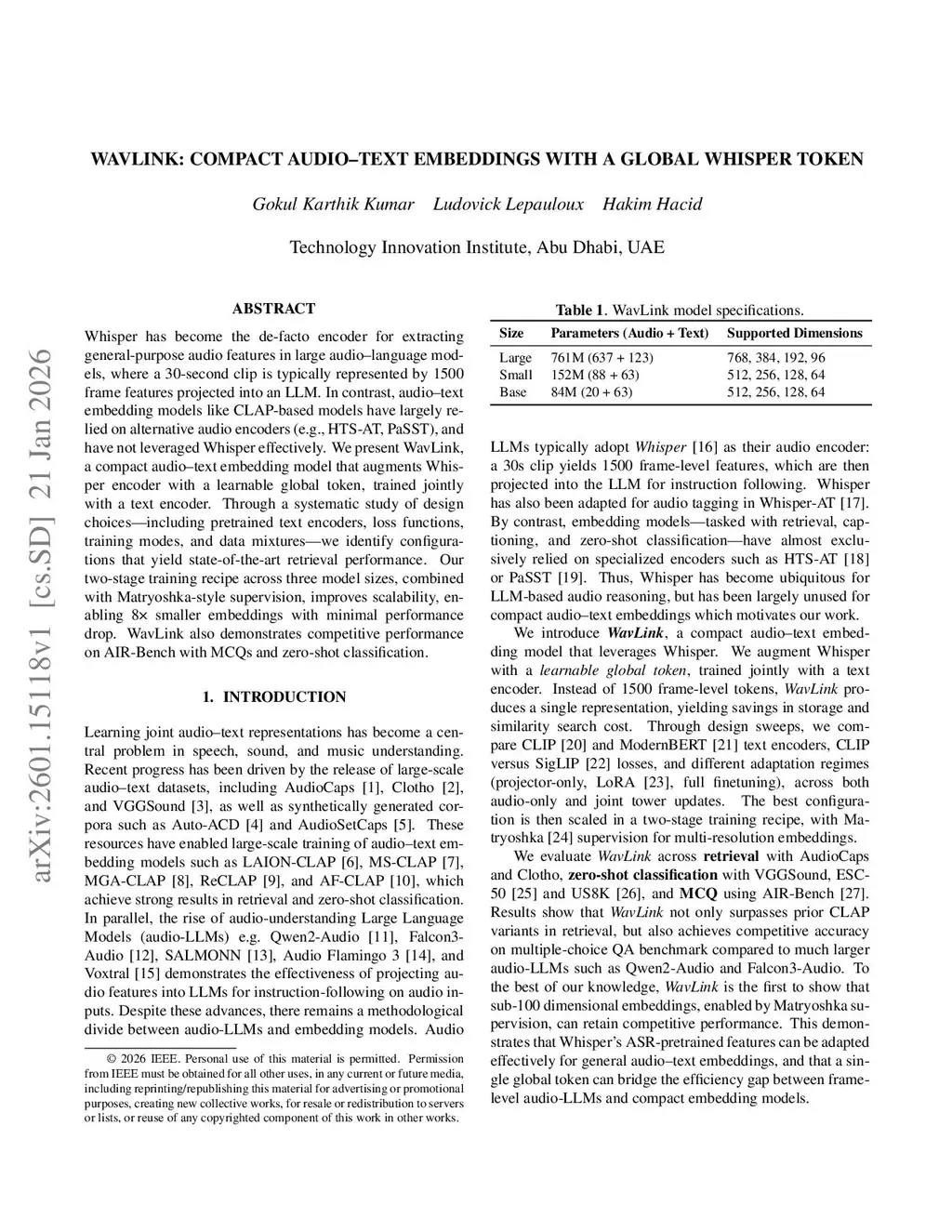 WavLink: Compact Audio-Text Embeddings with a Global Whisper Token