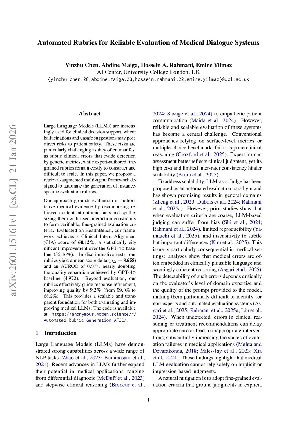 Automated Rubrics for Reliable Evaluation of Medical Dialogue Systems