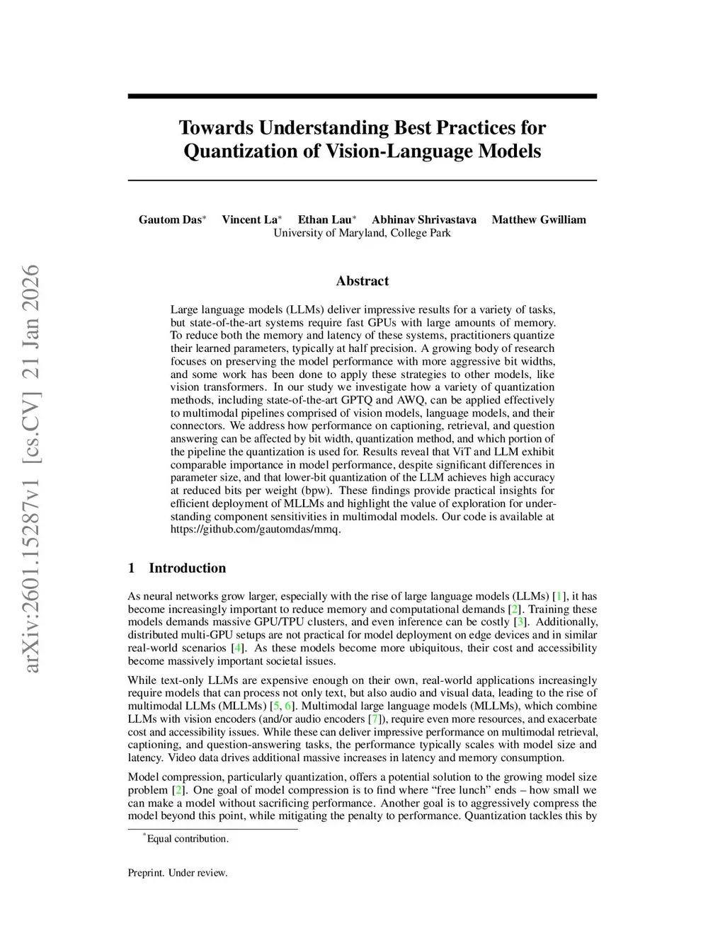 Towards Understanding Best Practices for Quantization of Vision-Language Models