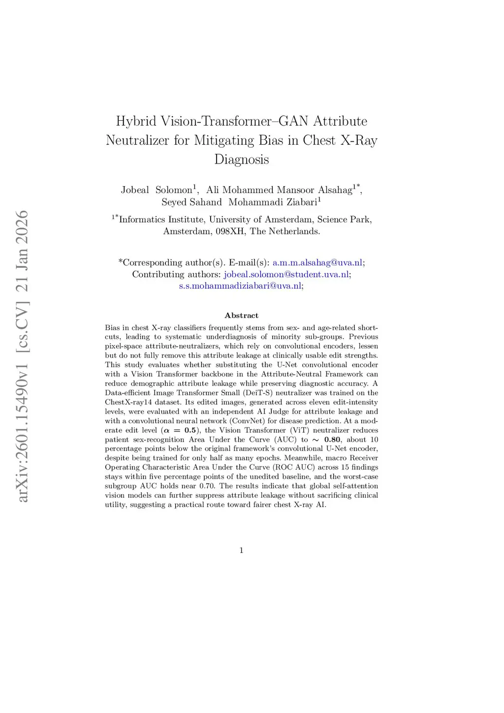 Hybrid Vision Transformer_GAN Attribute Neutralizer for Mitigating Bias in Chest X_Ray Diagnosis