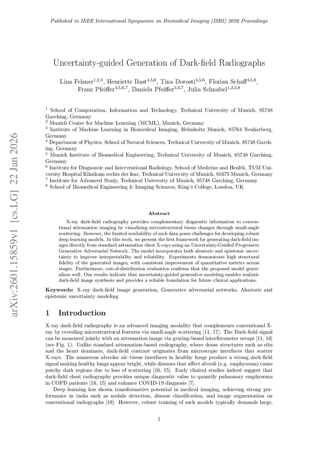 Uncertainty-guided Generation of Dark-field Radiographs
