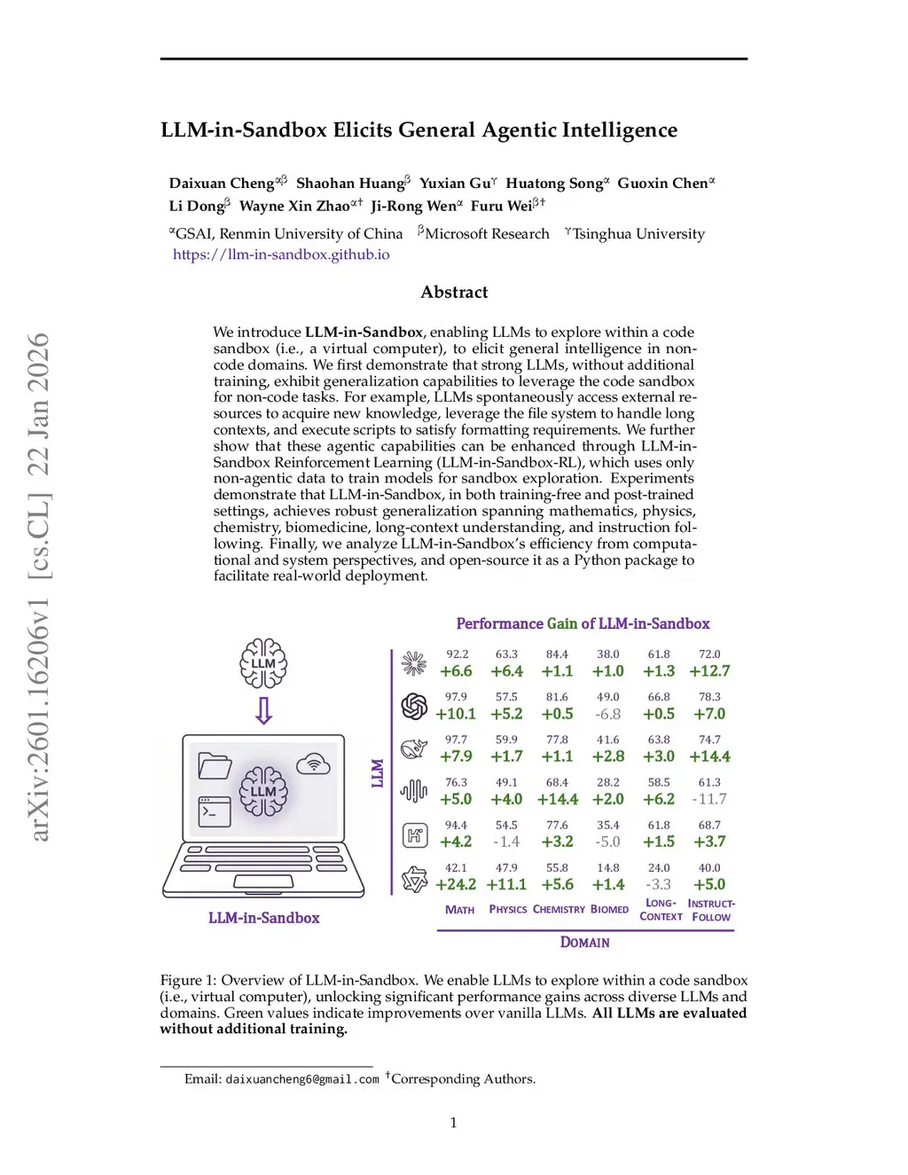 LLM-in-Sandbox Elicits General Agentic Intelligence