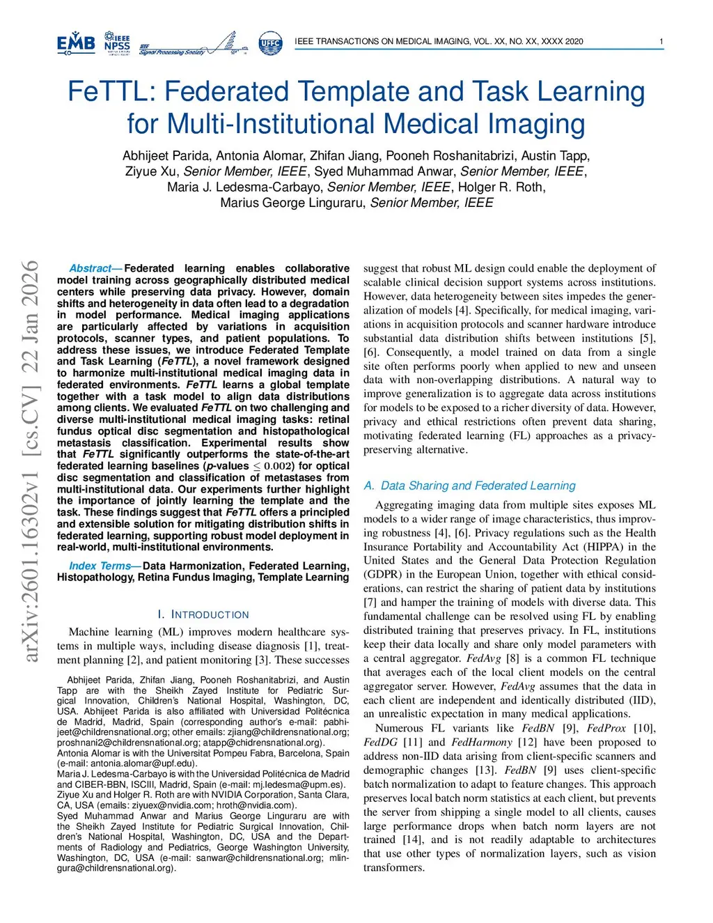 FeTTL: Federated Template and Task Learning for Multi-Institutional Medical Imaging