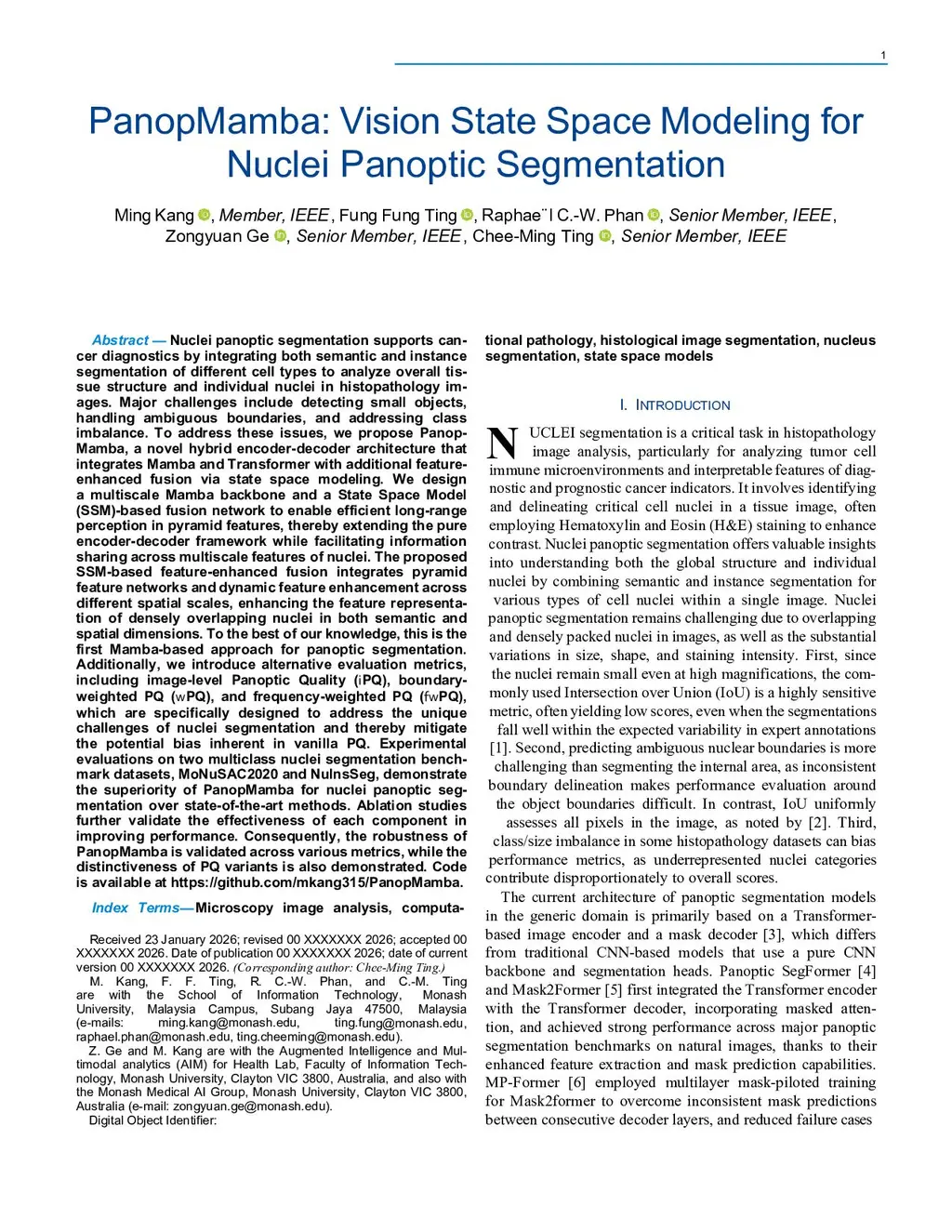 PanopMamba: Vision State Space Modeling for Nuclei Panoptic Segmentation