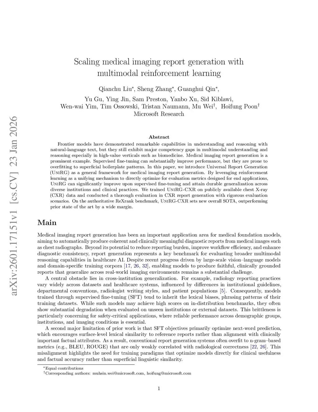 Scaling medical imaging report generation with multimodal reinforcement learning