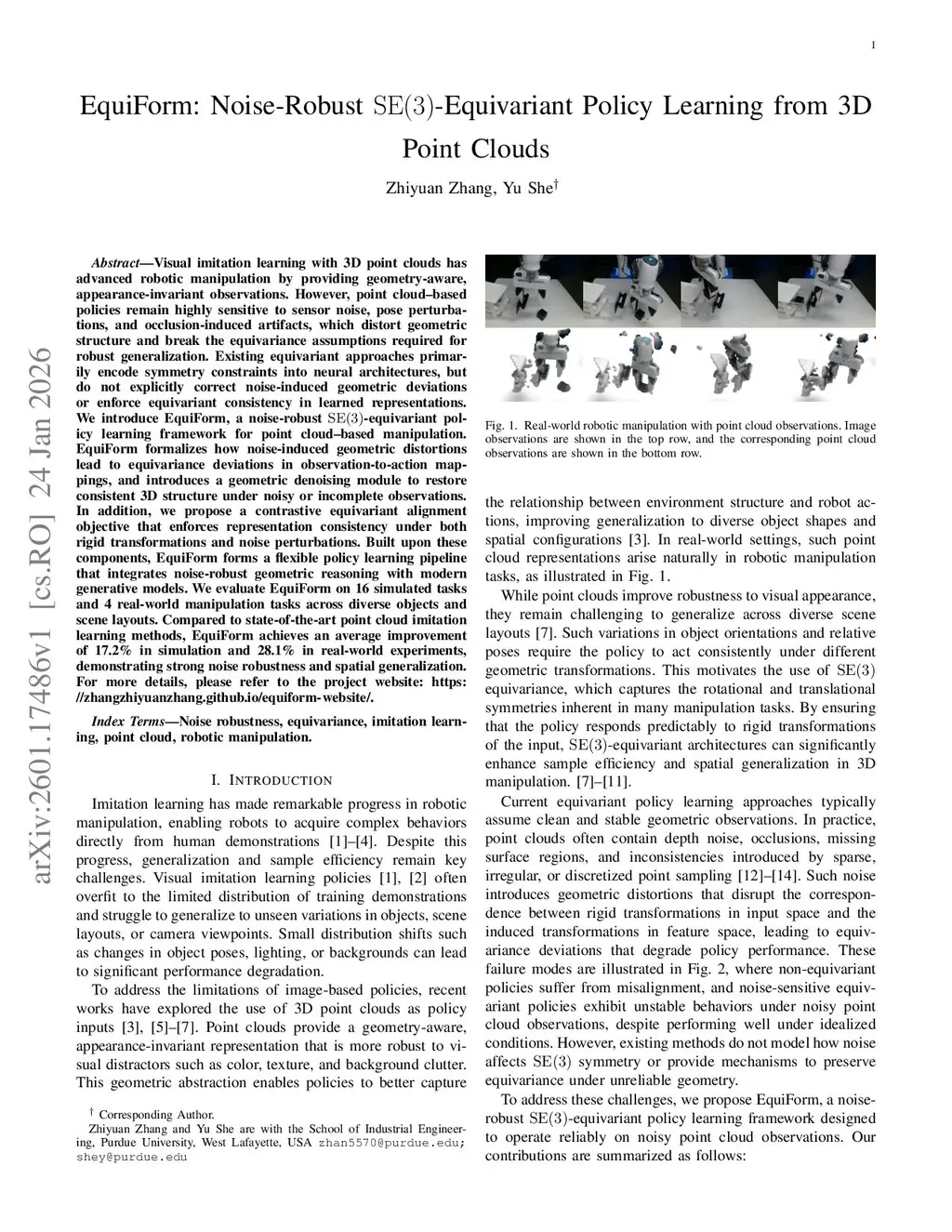 EquiForm: Noise-Robust SE(3)-Equivariant Policy Learning from 3D Point Clouds