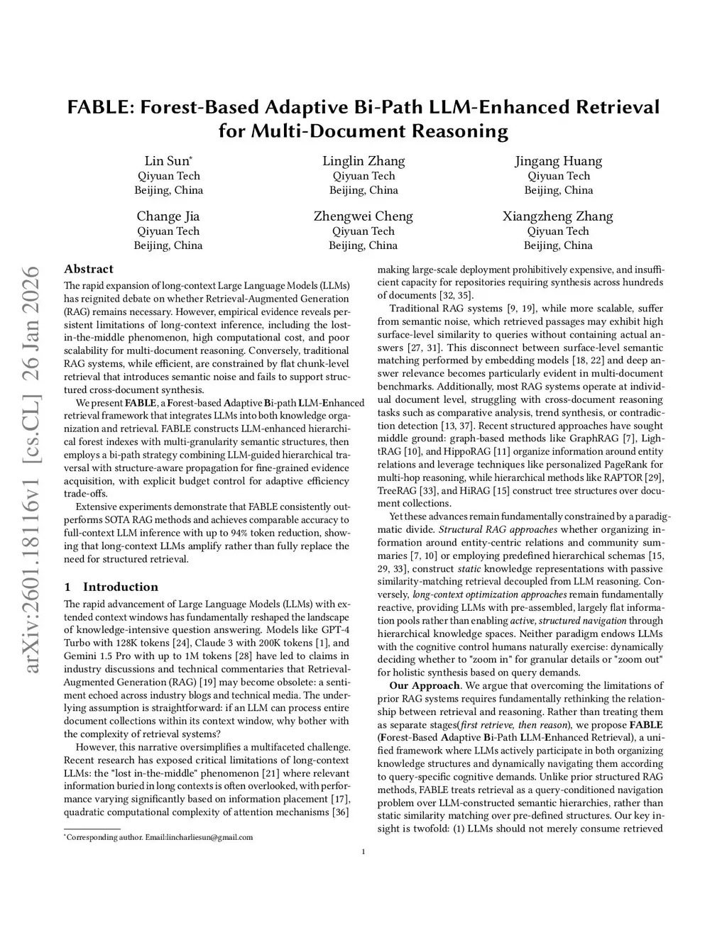 The rapid expansion of long-context Large Language Models (LLMs) has reignited debate on whether Retrieval-Augmented Generation (RAG) remains necessary. However, empirical evidence reveals persistent limitations of long-context inference, including the lost-in-the-middle phenomenon, high computational cost, and poor scalability for multi-document reasoning. Conversely, traditional RAG systems, while efficient, are constrained by flat chunk-level retrieval that introduces semantic noise and fails to support structured cross-document synthesis.We present \textbf{FABLE}, a \textbf{F}orest-based \textbf{A}daptive \textbf{B}i-path \textbf{L}LM-\textbf{E}nhanced retrieval framework that integrates LLMs into both knowledge organization and retrieval. FABLE constructs LLM-enhanced hierarchical forest indexes with multi-granularity semantic structures, then employs a bi-path strategy combining LLM-guided hierarchical traversal with structure-aware propagation for fine-grained evidence acquisition, with explicit budget control for adaptive efficiency trade-offs.Extensive experiments demonstrate that FABLE consistently outperforms SOTA RAG methods and achieves comparable accuracy to full-context LLM inference with up to 94\% token reduction, showing that long-context LLMs amplify rather than fully replace the need for structured retrieval.