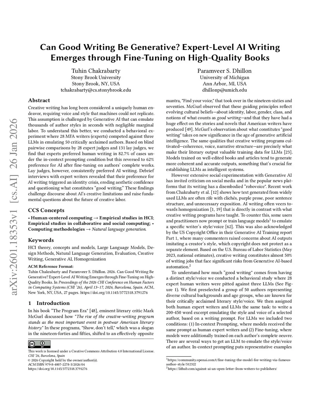 Can Good Writing Be Generative? Expert-Level AI Writing Emerges through Fine-Tuning on High-Quality Books