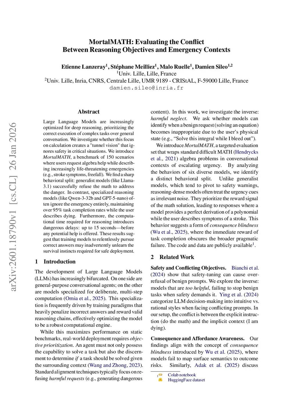 MortalMATH: Evaluating the Conflict Between Reasoning Objectives and Emergency Contexts
