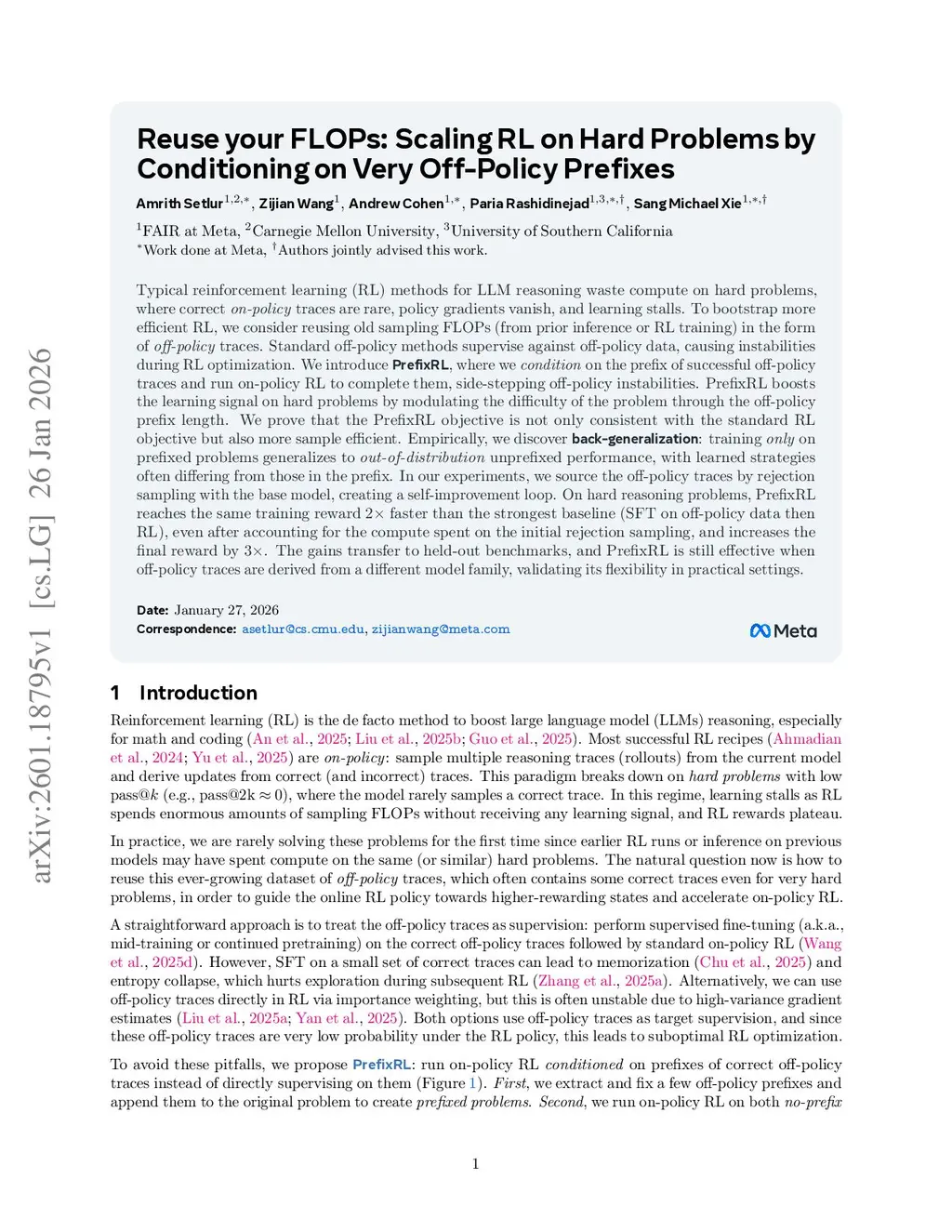 Reuse your FLOPs: Scaling RL on Hard Problems by Conditioning on Very Off-Policy Prefixes