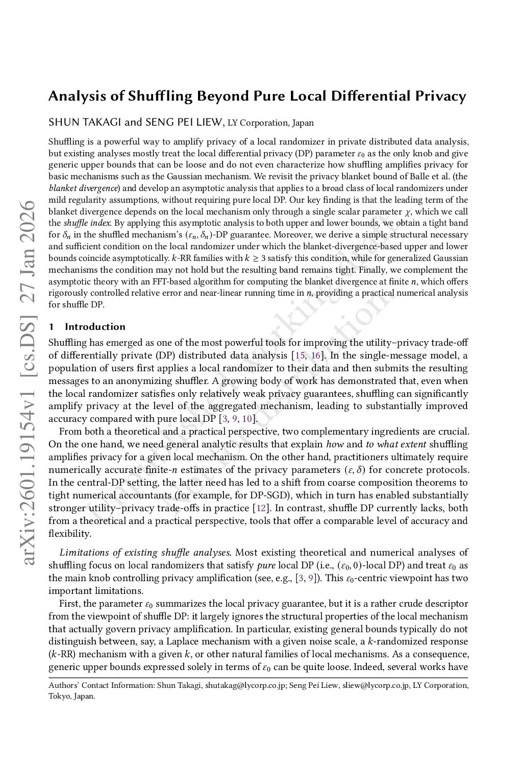 Analysis of Shuffling Beyond Pure Local Differential Privacy