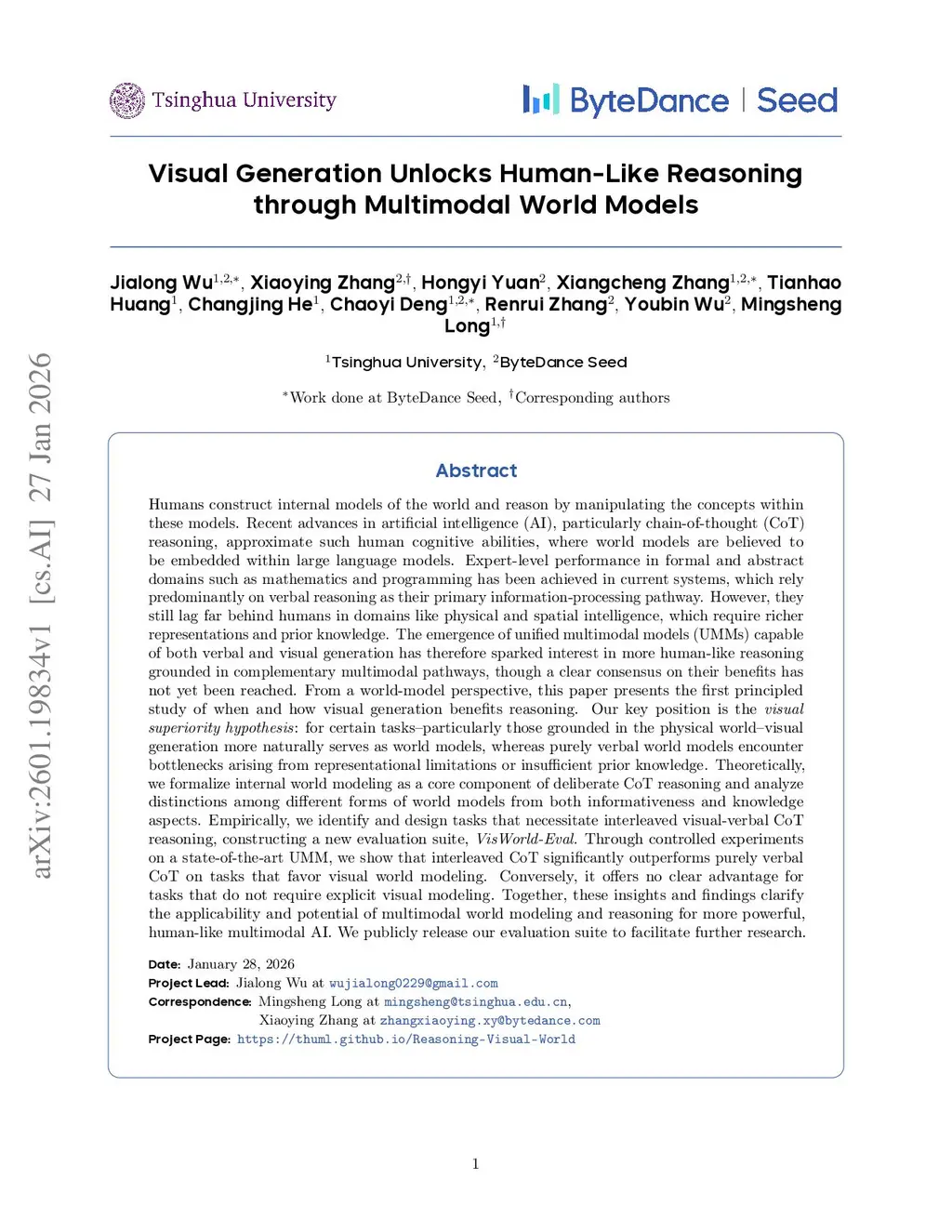 Humans construct internal world models and reason by manipulating the concepts within these models. Recent advances in AI, particularly chain-of-thought (CoT) reasoning, approximate such human cognitive abilities, where world models are believed to be embedded within large language models. Expert-level performance in formal and abstract domains such as mathematics and programming has been achieved in current systems by relying predominantly on verbal reasoning. However, they still lag far behind humans in domains like physical and spatial intelligence, which require richer representations and prior knowledge. The emergence of unified multimodal models (UMMs) capable of both verbal and visual generation has therefore sparked interest in more human-like reasoning grounded in complementary multimodal pathways, though their benefits remain unclear. From a world-model perspective, this paper presents the first principled study of when and how visual generation benefits reasoning. Our key position is the visual superiority hypothesis: for certain tasks--particularly those grounded in the physical world--visual generation more naturally serves as world models, whereas purely verbal world models encounter bottlenecks arising from representational limitations or insufficient prior knowledge. Theoretically, we formalize internal world modeling as a core component of CoT reasoning and analyze distinctions among different forms of world models. Empirically, we identify tasks that necessitate interleaved visual-verbal CoT reasoning, constructing a new evaluation suite, VisWorld-Eval. Controlled experiments on a state-of-the-art UMM show that interleaved CoT significantly outperforms purely verbal CoT on tasks that favor visual world modeling, but offers no clear advantage otherwise. Together, this work clarifies the potential of multimodal world modeling for more powerful, human-like multimodal AI.