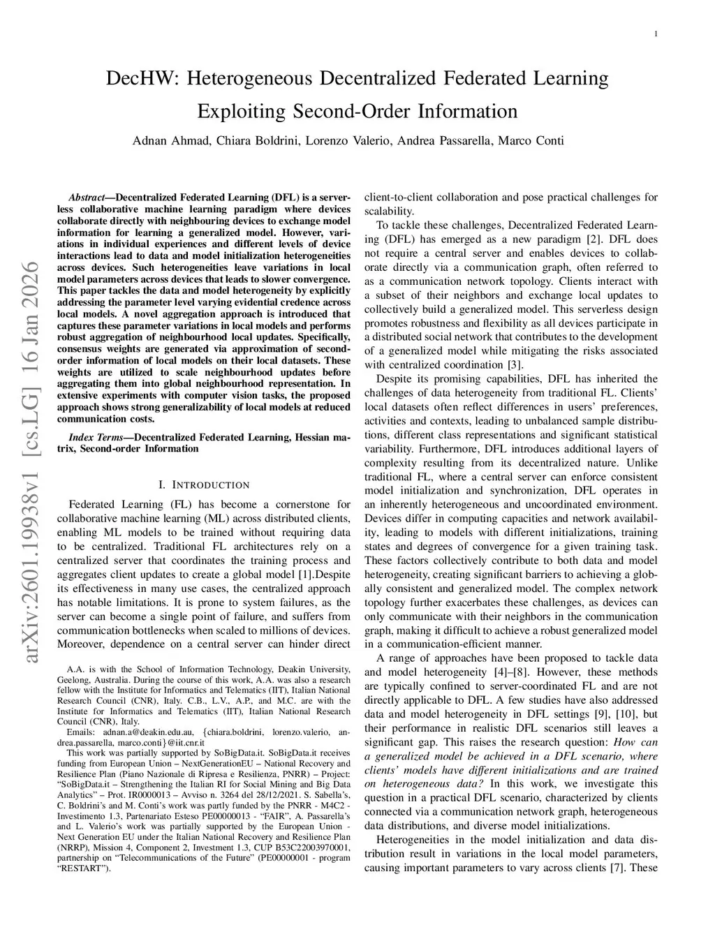 DecHW: Heterogeneous Decentralized Federated Learning Exploiting Second-Order Information