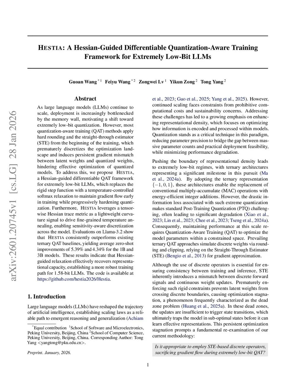 HESTIA: A Hessian-Guided Differentiable Quantization-Aware Training Framework for Extremely Low-Bit LLMs