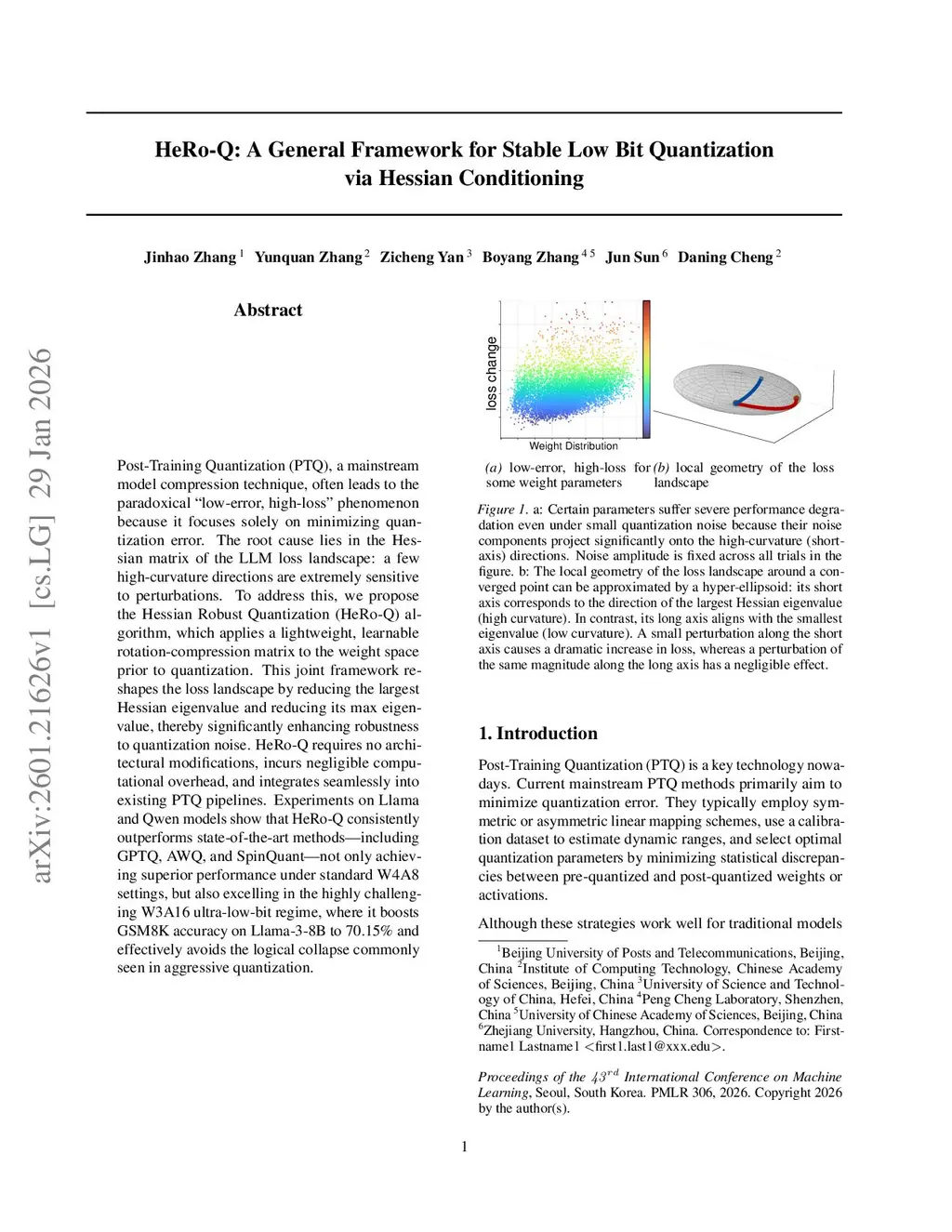 HeRo-Q: A General Framework for Stable Low Bit Quantization via Hessian Conditioning